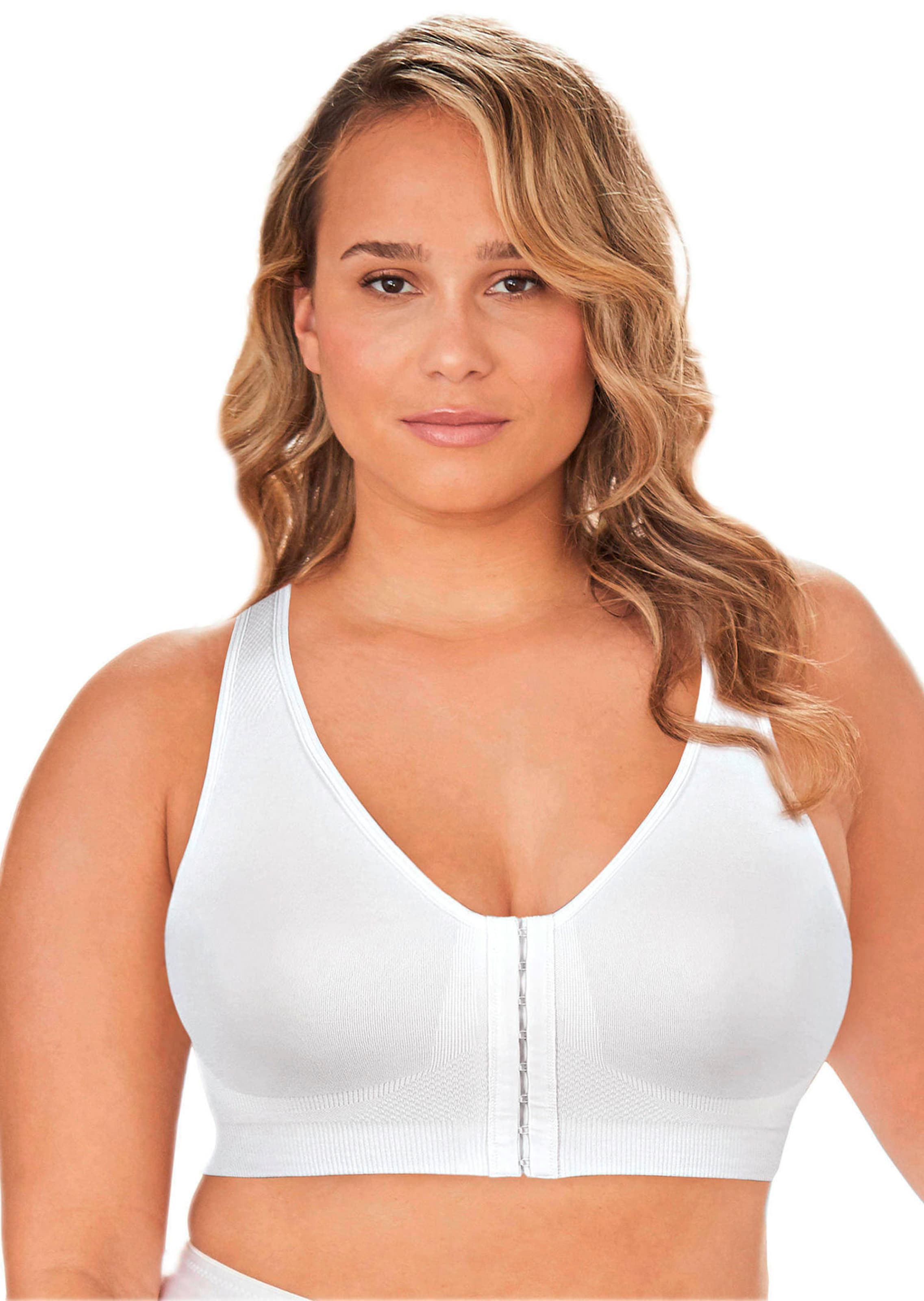 Bustier mit Vorderverschluss von EXQUISITE FORM. Der nahtlose BH aus seidig-weichem 4-Wege-Stretch trägt sich überaus bequem und zeichnet sich auch unter figurnaher Kleidung nicht ab. Doppellagig gearbeitete Komfort-Cups ohne Bügel sorgen für eine natürliche Formgebung, der Vorderverschluss macht das An- und Ausziehen leicht. Das breite, anschmiegsame Unterbrustband bietet eine optimale Stützfunktion. Mit breiten, gepolsterten Komfortträgern.
