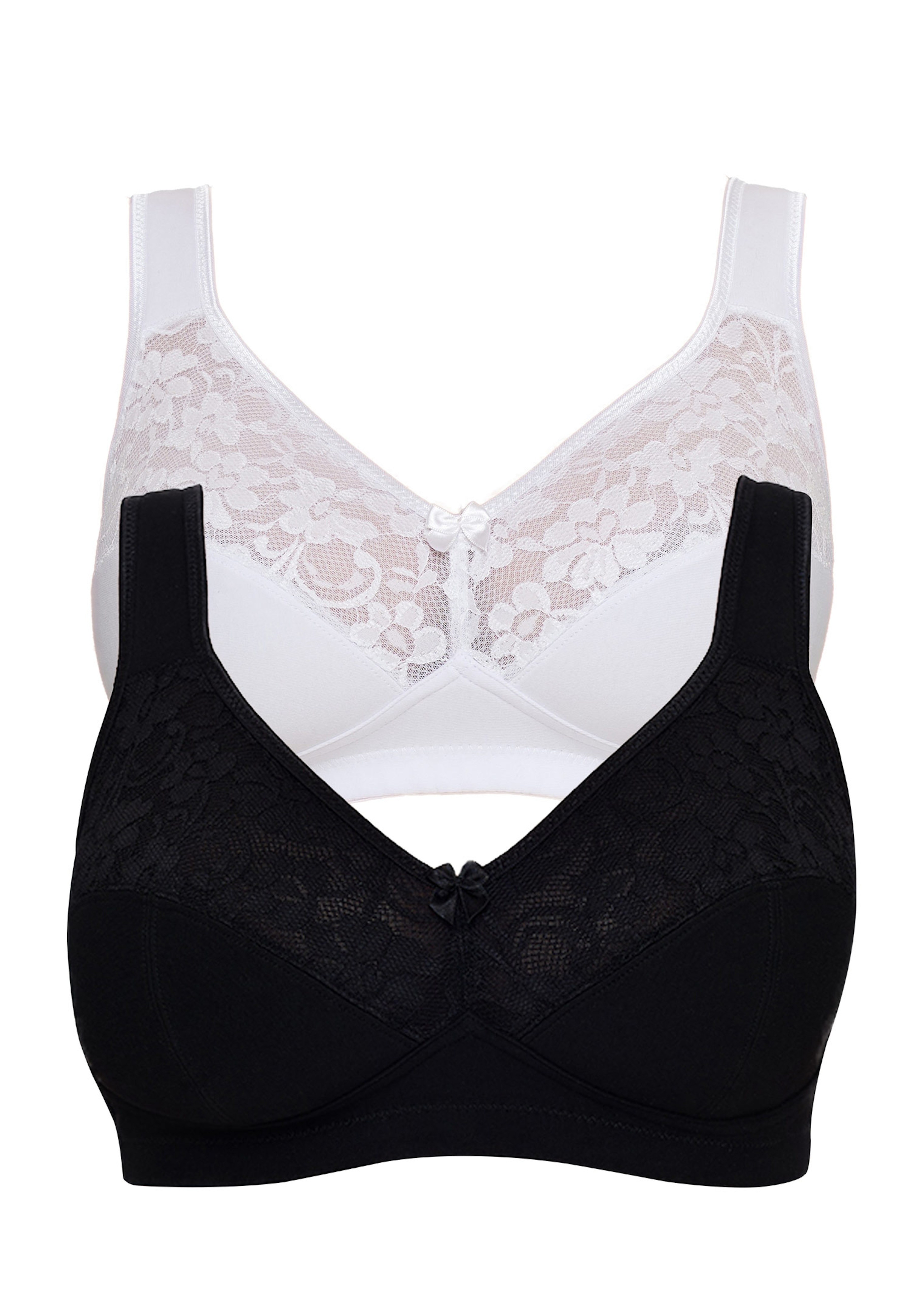 Doppelpack BH mit Komfortträger – holen Sie sich Ihr Lieblingsmodell in zwei Farben zum preisgünstigen 2er-Pack: Der Baumwoll-BH aus der Serie "Basic" von SUSA zeigt sich mit breitem Spitzeneinsatz im floralen Dessin und einer kleinen Satinschleife am Ausschnitt sehr feminin. Perfekte Passform versprechen die nahtgeformten, besonders stabil verarbeiteten Cups und die seitlich eingearbeiteten Stäbchen. Mit weich gefüttertem, breiten Unterbrustband. Komfortträger gepolstert und im Rücken längenverstellbar.