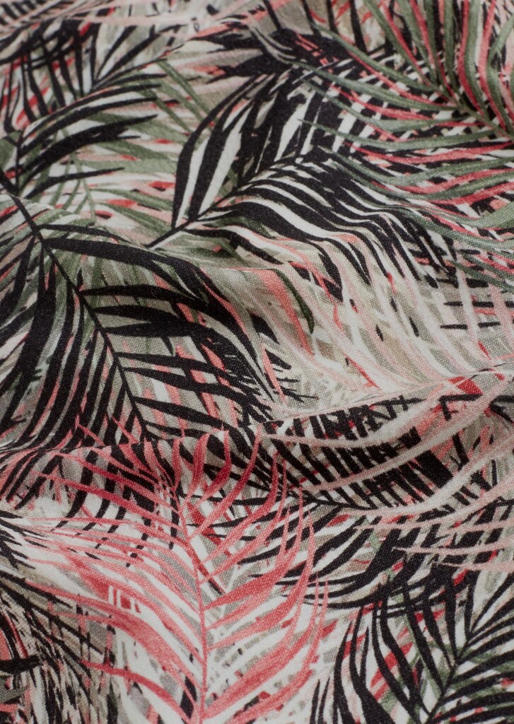 Druckshirt mit auĂŸergewöhnlich schönem Palmen-Muster allover, jedes Modell ein Unikat. Blickfang ist der raffinierte Rundhalsausschnitt mit kleiner Aussparung, das charmante Schmuckdetail setzt zusätzlich hĂ¼bsche Akzente. Hautfreundliche Viskose und stretchbequemes Elasthan verleihen höchsten Tragekomfort. Länge ca. 64 cm in Gr. 46, ca. 60 cm in Gr. 23.
