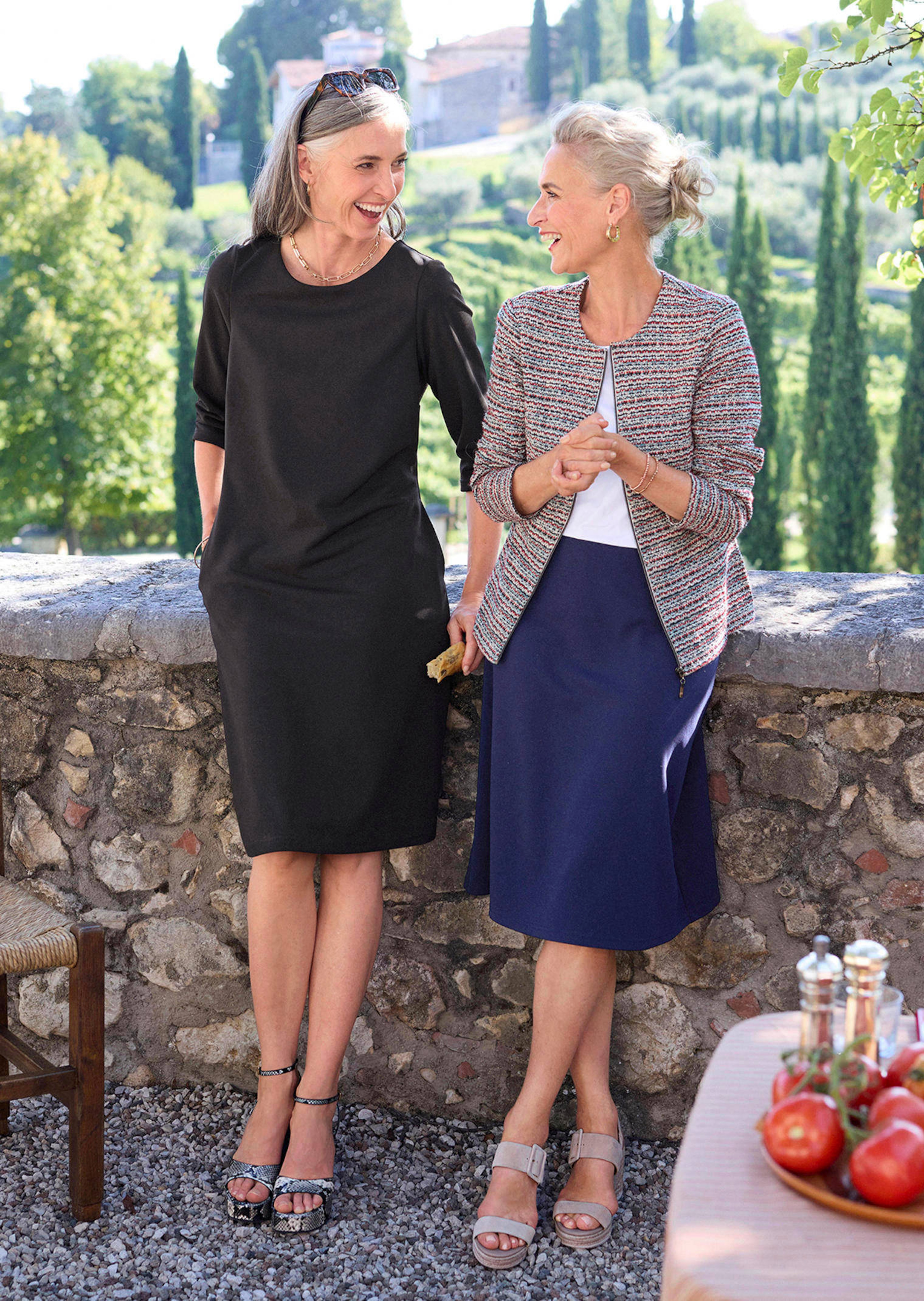 Kleid, das in seiner schlichten Eleganz überzeugt: Mit U-Boot-Ausschnitt, rückwärtigem Knopfverschluss und charmant gerafften 3/4-Ärmeln. Leicht ausgestellt mit Abnähern und Teilungsnähten schmeichelt das Kleid der Figur, Seitennahttaschen bieten Komfort. Aus stretchbequemer, pflegeleichter Ware mit kreppigem Griff. Länge ca. 102 cm in Gr. 46, ca. 96 cm in Gr. 23.