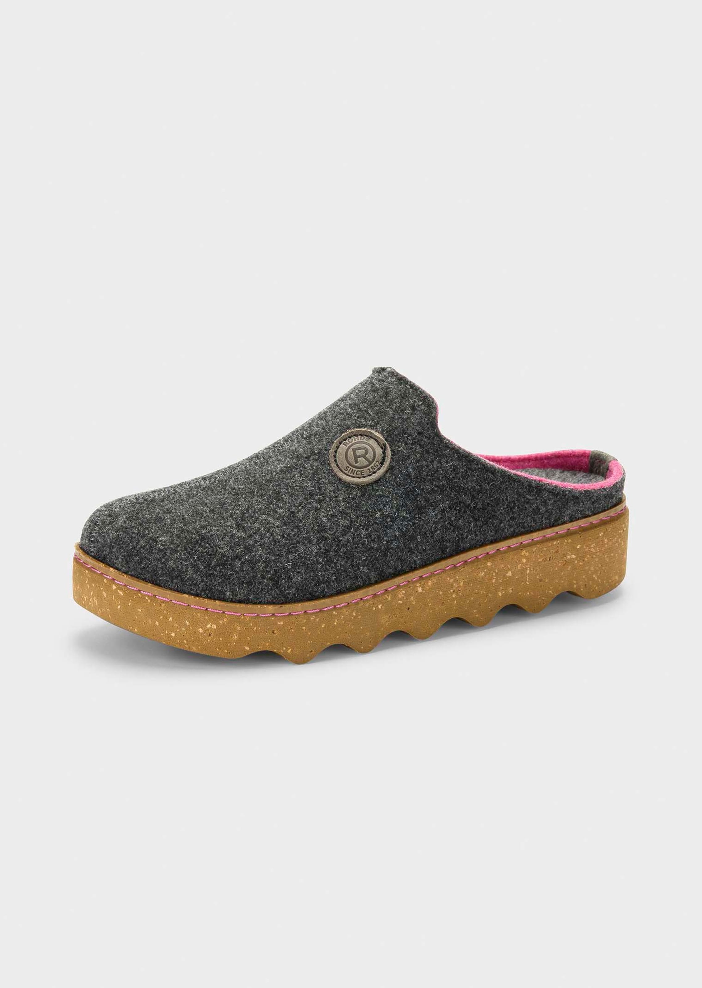 Pantoffel von ROHDE aus weichem Filz in Bicolor-Optik. Herausnehmbare Filzeinlegesohle. Rutschsichere PU-Laufsohle in Kork-Optik – flexibel und dämpfend.