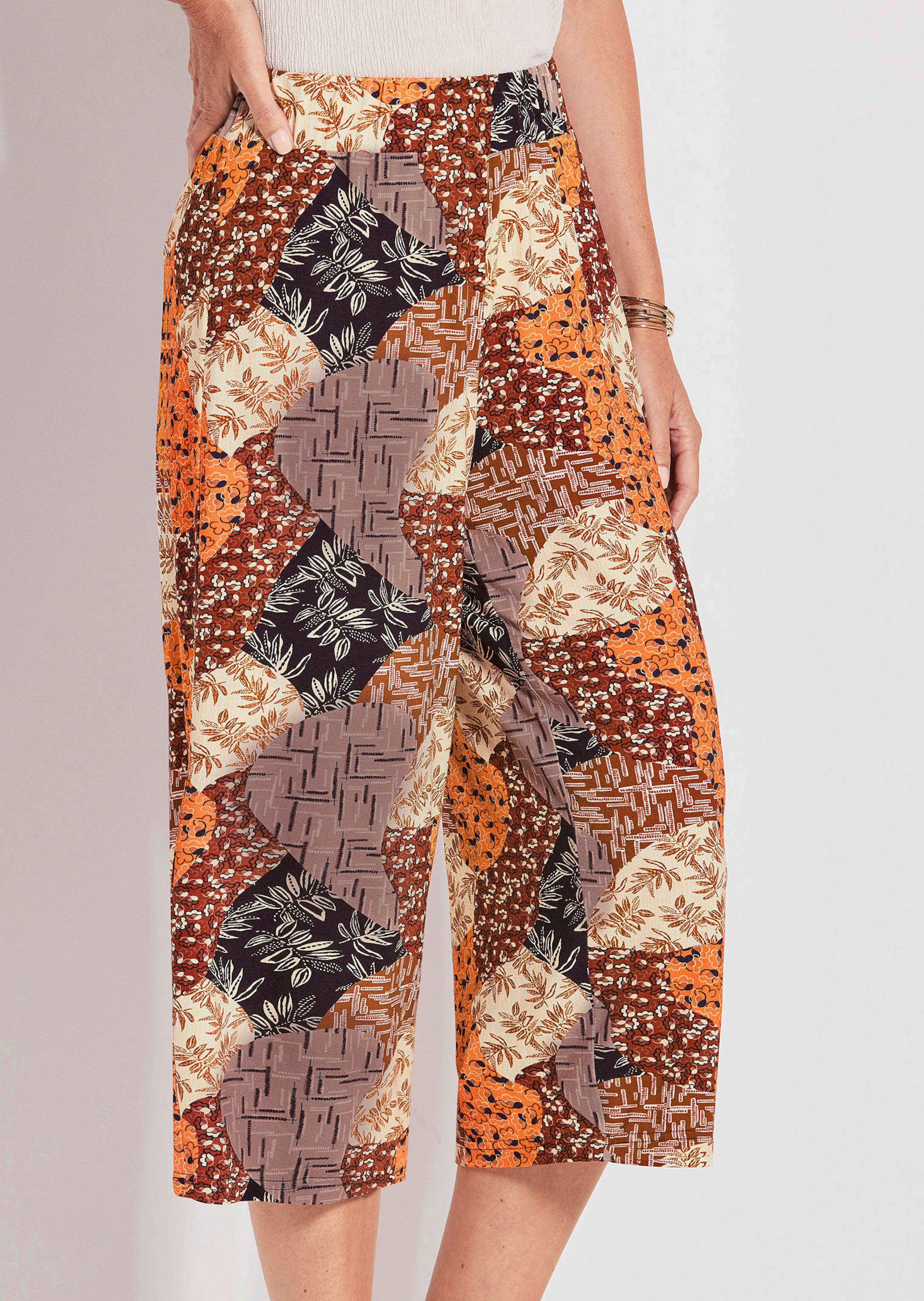 Culotte VERA mit Rundumschlupfbund. Der Unikatprint im Mustermix präsentiert sich in kombistarken Farben. Aus weich fallendem Viskose-Jersey, der das weite Bein schön umspielt. Mit praktischen Seitennahttaschen. Herrlich komfortabel und trageangenehm. Saumweite ca. 60 cm. Weiter Beinverlauf.