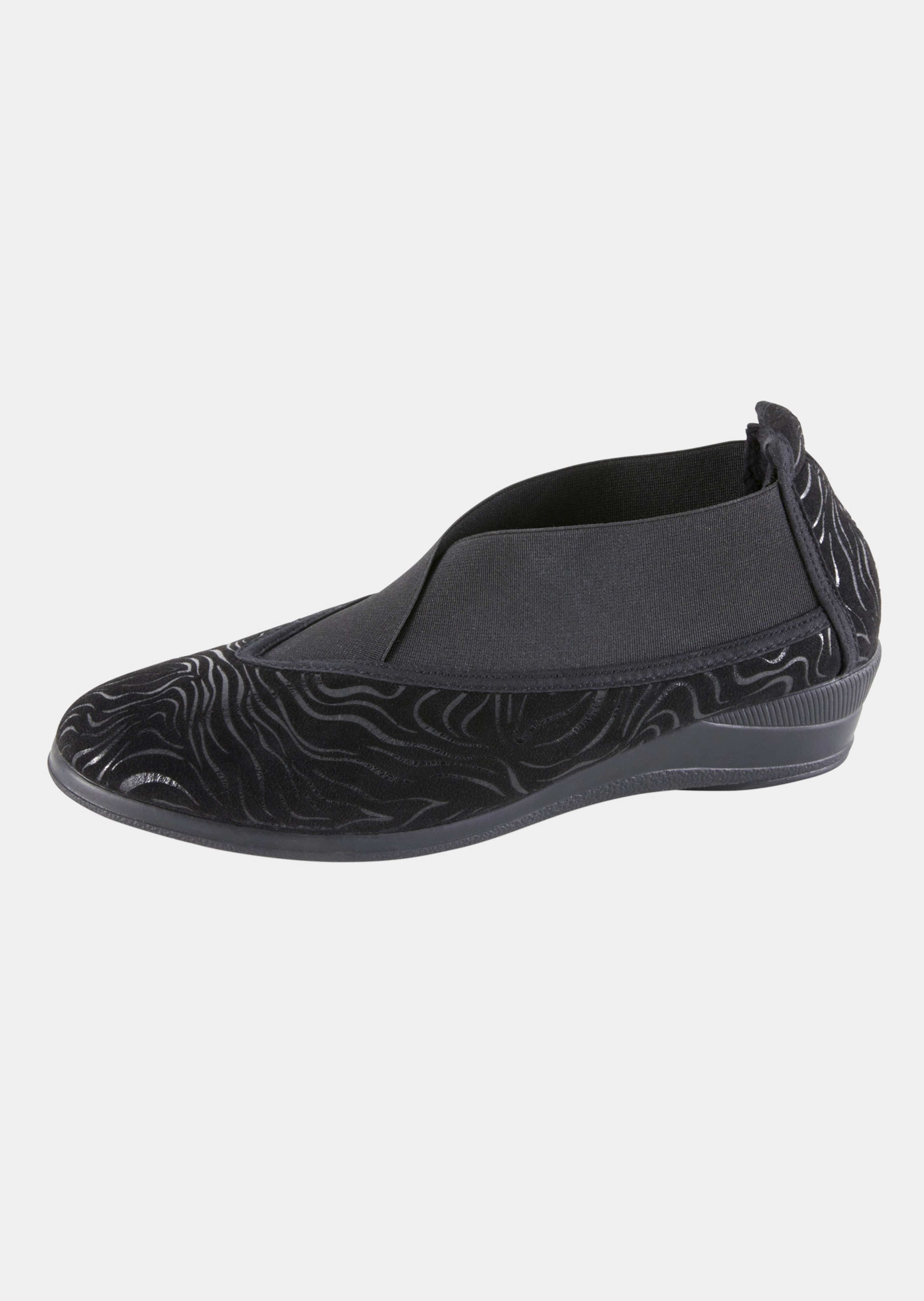 Hausschuhe in G-Weite in einzigartiger Passform – dafür sorgt der breite Gummizug über dem Spann. So bleibt der Schuh fest am Fuß und gibt sicheren Halt. Die gemütliche Schnitt bietet extra Komfort. Zum Blickfang wird das feminine Modell dank der eleganten Soft-Touch-Oberfläche im filigranen Dessin. Mit rutschsicherer Laufsohle aus echtem Kautschuk.