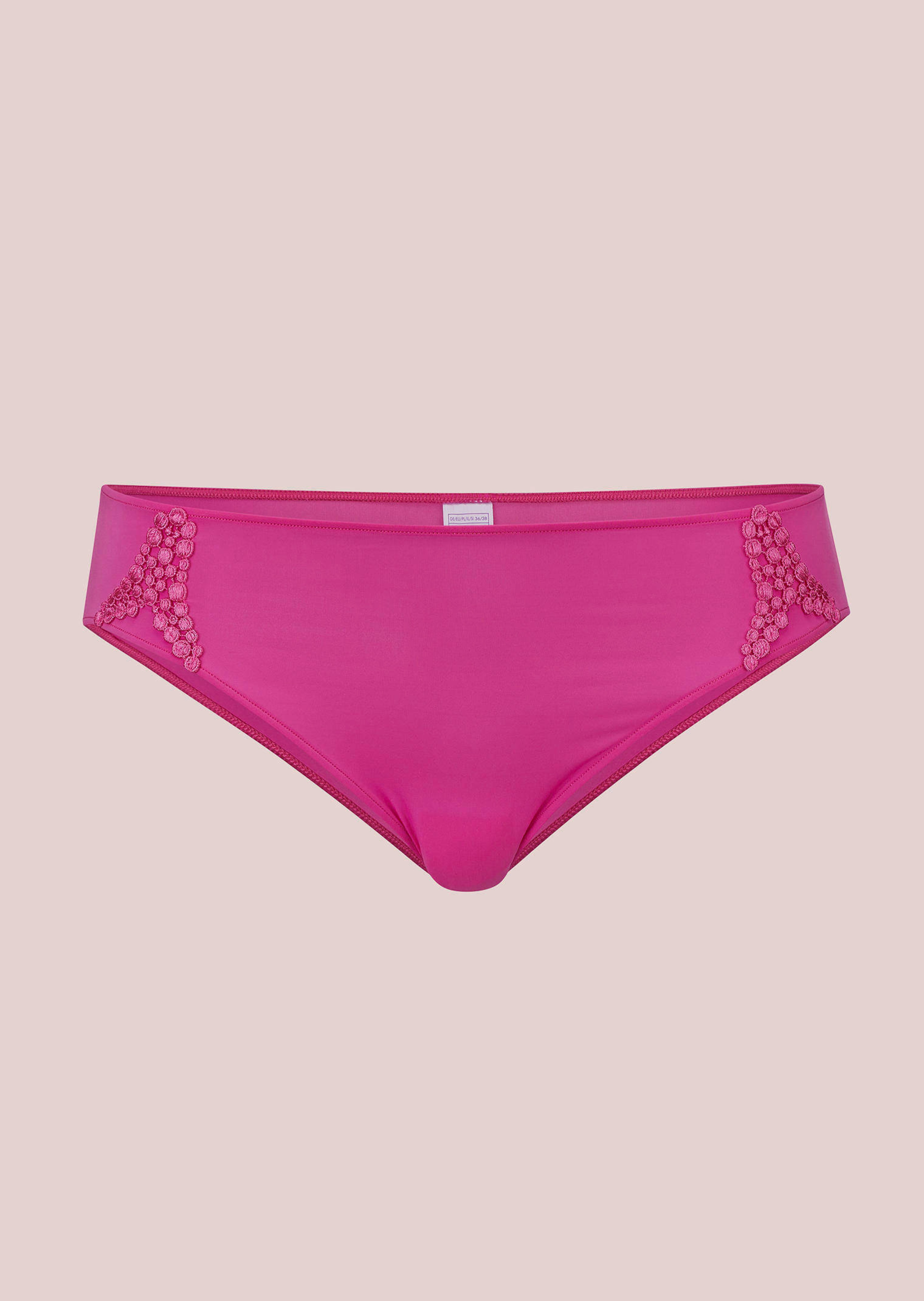 Hüftslip von VIANIA aus leicht glänzender, seidig-weicher Microfaser – anschmiegsam und atmungsaktiv. Flache Beinabschlüsse sorgen für eine nahezu unsichtbare Optik unter enger Kleidung. Besonders edel dank femininer Spitze an den Seiten. Mit baumwollgefüttertem Schritt.