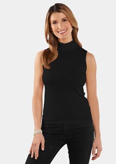 Blazershirt ohne Arm. Bietet viele Kombinationsmöglichkeiten und ist besonders ideal zum Darunterziehen. Mit zartem Glanz und seidenweichem Griff lässt die hautsympathische und atmungsaktive Baumwoll-Modal-Qualität keine Wünsche offen. Bequem geschnitten und mit kleinem Stehkragen.