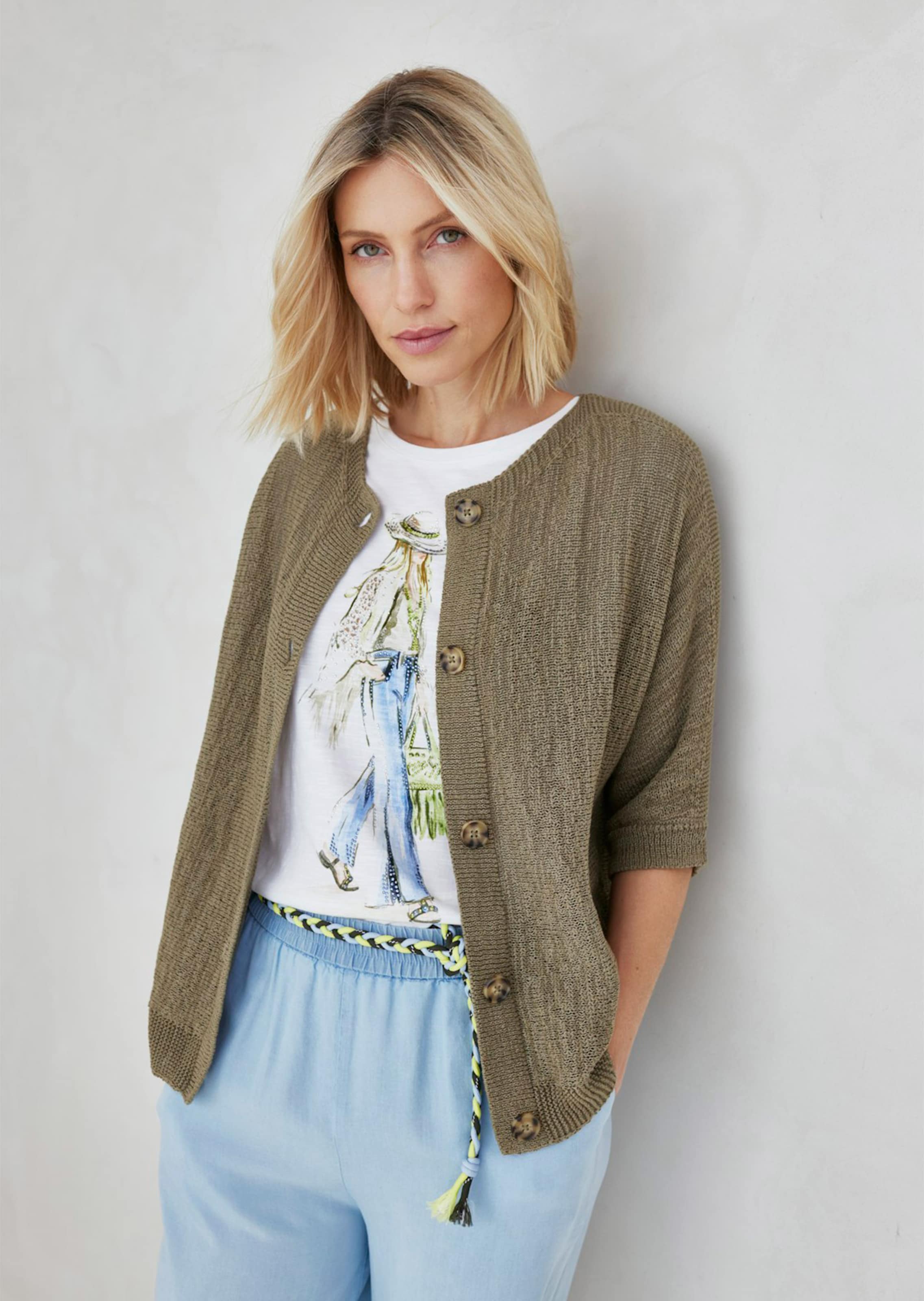 Shirt von RABE mit femininem Frontmotiv, das mit Glitzersteinchen schicke Akzente setzt – ein echter Blickfang, der jeden Look bereichert. Der kastige Schnitt mit Rundhals und Halbarm sitzt herrlich leger, die leicht nach vorne verlaufende Seitennaht verleiht dem T-Shirt einen modischen Touch! In sanft strukturierter Flammenware aus Baumwolle und Modal. Länge ca. 68 cm in Gr. 46.