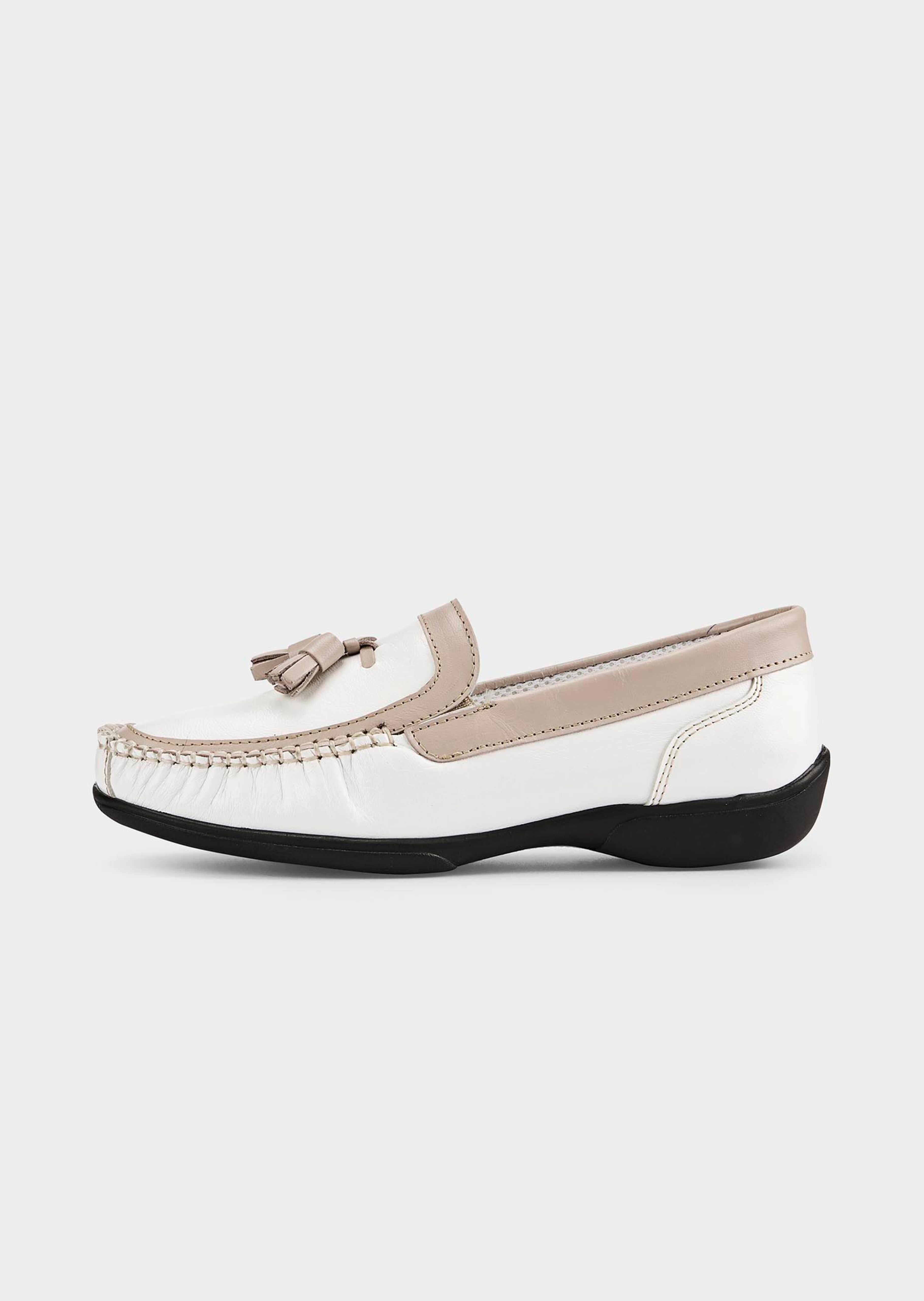 Mokassins aus echtem Leder, mit klassischer Lederquaste, Handstich-Optik und in kontrastiger Farbstellung. Die dämpfende EVA-Laufsohle bietet ein angenehmes Gehgefühl und federt jeden Schritt weich ab. Mit praktischem Wechselfußbett – perfekt für Ihre eigenen Einlagen. Futter aus Synthetik.