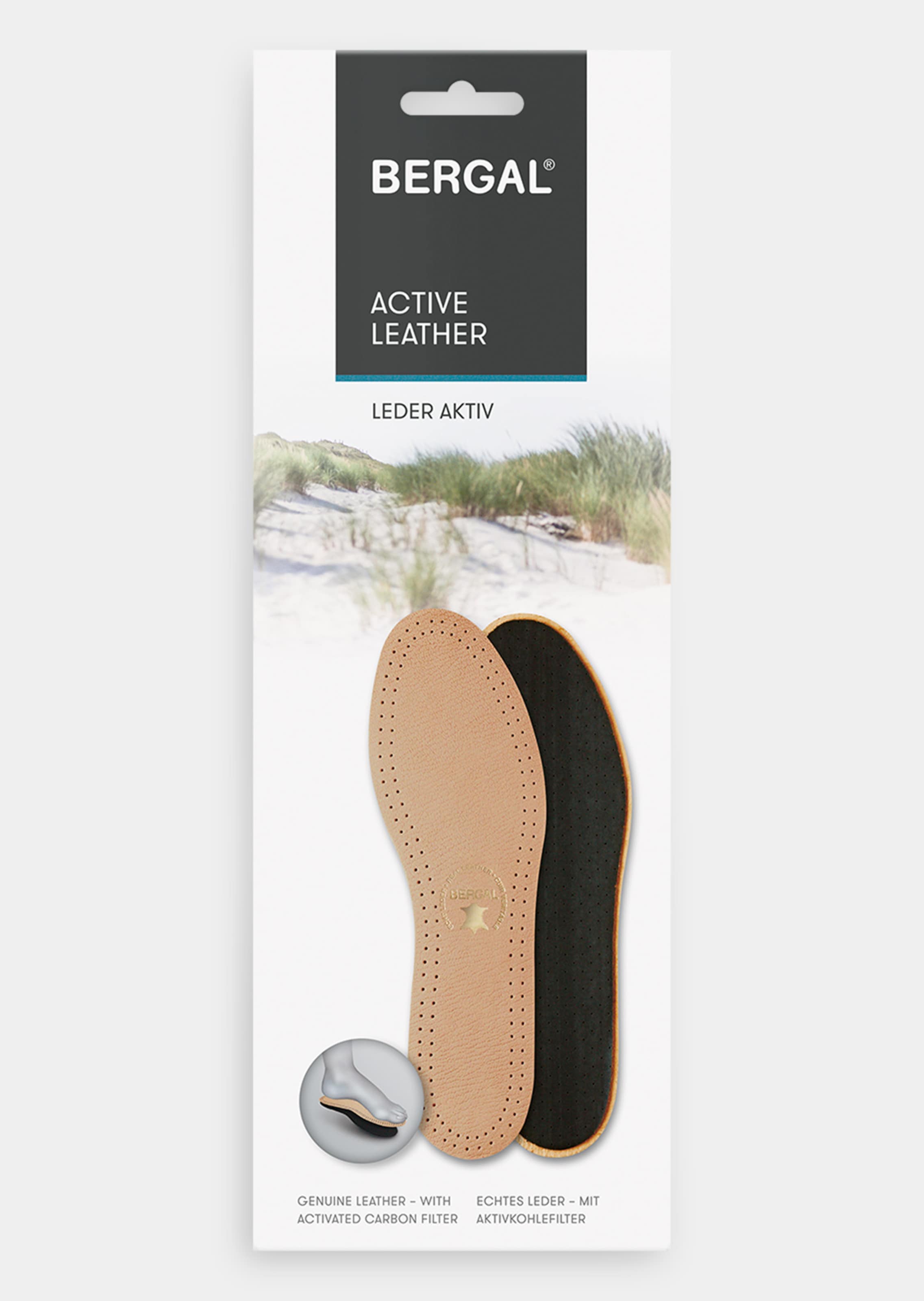 Ledersohle von BERGAL aus 100% naturbelassenem, pflanzlich gegerbtem Leder – für ein angenehmes Fußklima den ganzen Tag. Die Aktivkohle-Latexschaum-Polsterung bindet Feuchtigkeit, mindert Fußgeruch und dämpft jeden Schritt spürbar. Auch bei Fußbrennen eine echte Wohltat. Die Sohle trägt kaum auf und passt in jeden Schuhtyp – ideal zur Schonung der Decksohle. Unverzichtbar für alle, die ihren Schuhen und Füßen etwas Gutes tun möchten.