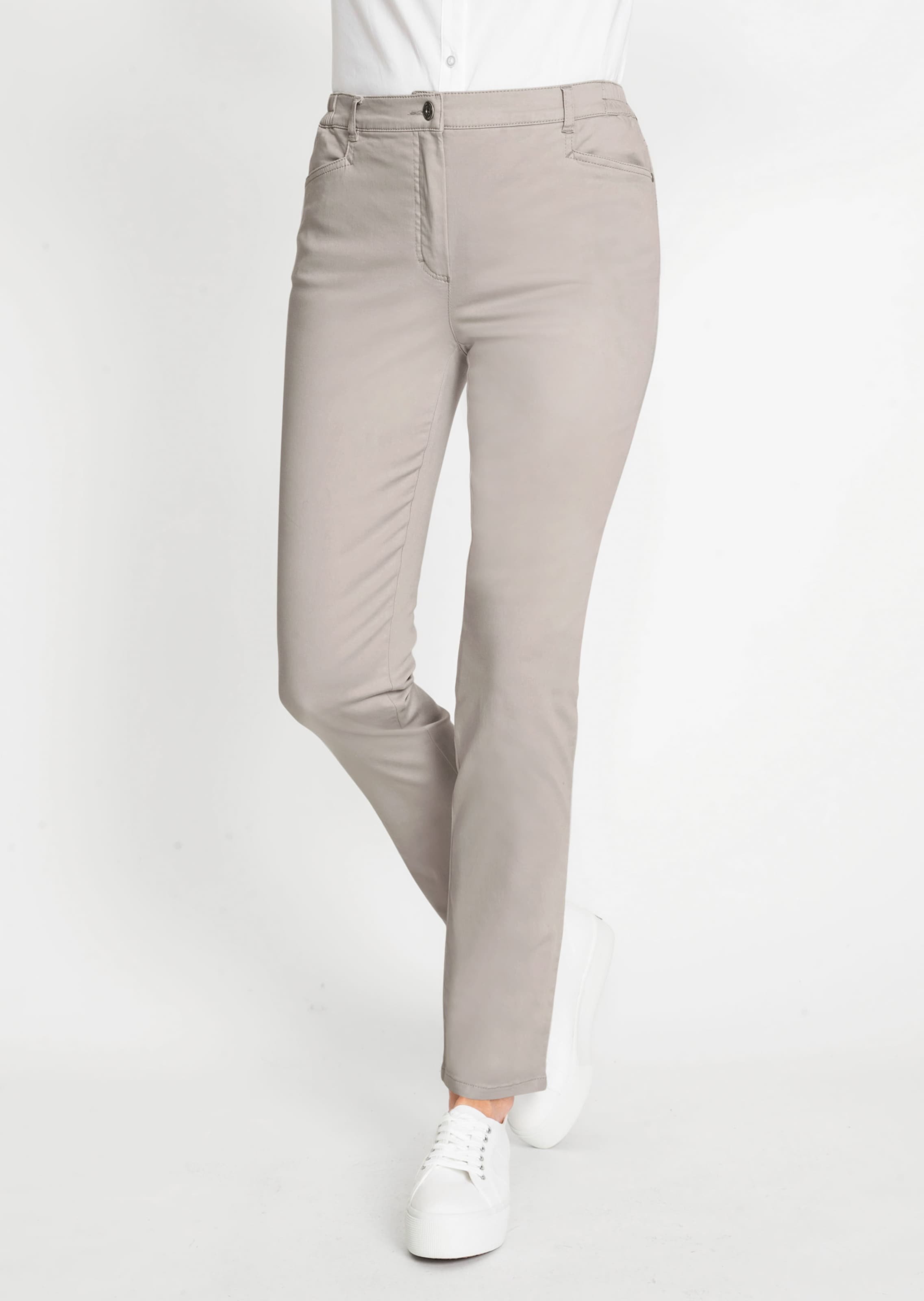Baumwollhose LOUISA COMFORT+ mit seitlichem Dehnbund. Die leicht schimmernde und sehr dehnbare Satinqualität ist besonders trageangenehm und formstabil. Schmaler, sportiver Schnitt mit Eingriffstaschen und Gürtelschlaufen. Der rückwärtige Sattel sorgt für einen guten Sitz. Saumweite LOUISA COMFORT+ ca. 38 cm. Schmaler Beinverlauf.