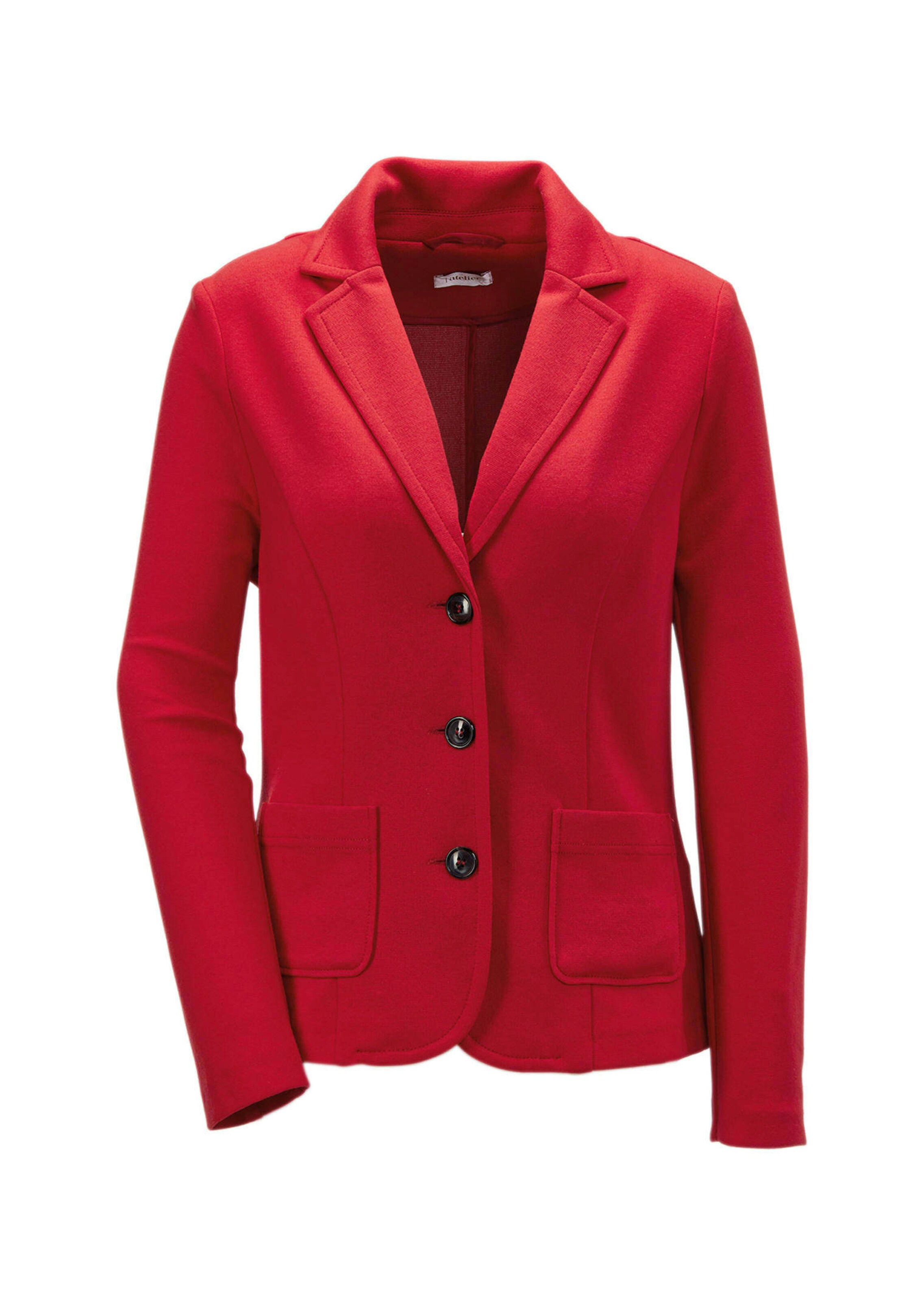 Jerseyblazer aus leichtem, dicht gewirktem Jersey – sehr elastisch und bequem, in schmaler Paßform. Genießen Sie die Optik eines Blazers mit dem Komfort einer Strickjacke. Mit hochwertig paspelierten Innennähten, zwei aufgesetzten Taschen und Reverskragen. Wiener Nähte zaubern eine schöne Silhouette. Länge ca. 65 cm in Gr. 46, ca. 61 cm in Gr. 23.