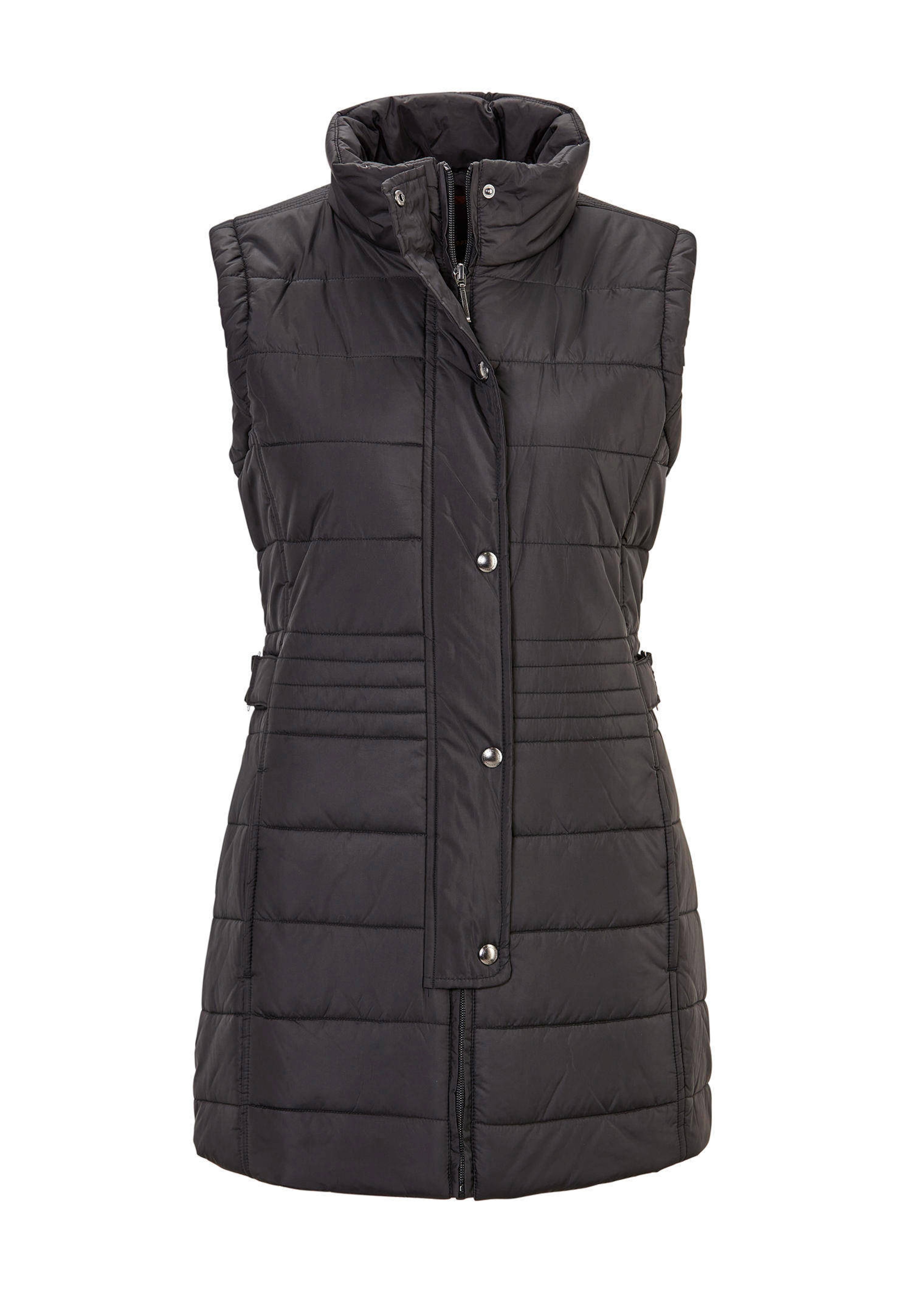 Weste in längerer Passform mit attraktivem Querstepp. Schmalere Steppungen in der Taille und Wiener Nähte sorgen für eine schlanke Optik. Dank verstellbarer Riegel an den Seiten können Sie das Modell zusätzlich auf Figur bringen. Die Weste lässt sich mit einem Reißverschluss schließen, der bis in den Stehkragen hinaufreicht – so bleibt der Hals warm. Eine Druckknopfblende schützt zudem vor Wind. Mit praktischen Eingrifftaschen an der Seite. Dieses Modell fällt eine Nummer kleiner aus. Bitte bestellen Sie diese Weste eine Nummer größer als gewohnt.