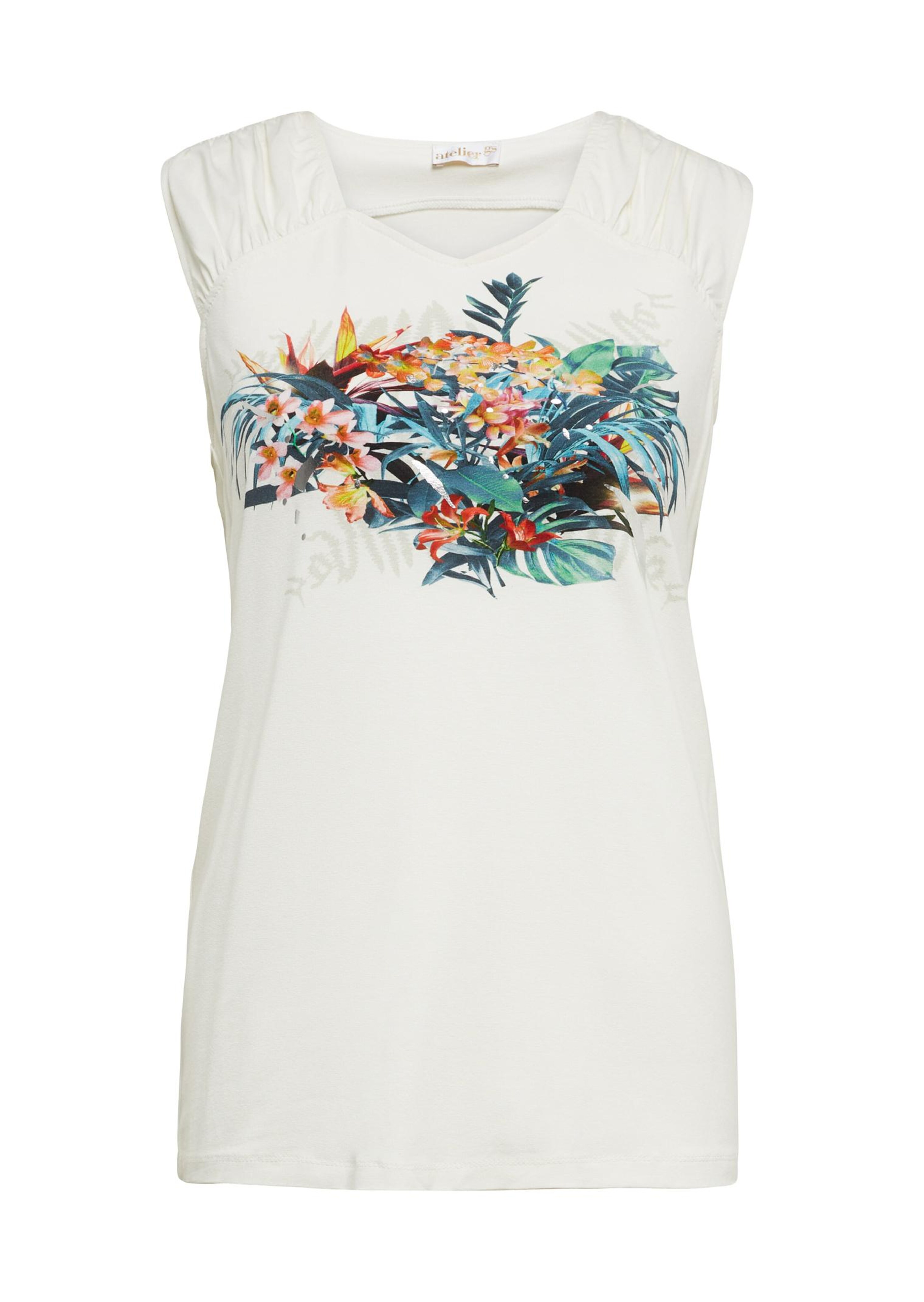 Drucktop aus einer rundum trageangenehmen Viskose-Elasthan-Ware. Besonderes Augenmerk verdient der wunderschöne platzierte Druck im Vorderteil, ein toller Blickfang. Die angekräuselte Schulterpasse und Brustabnäher sorgen für einen schönen Fall und optimalen Sitz. Mit abgerundetem V-Ausschnitt. Länge ca. 69 cm in Gr. 46, ca. 65 cm in Gr. 23.