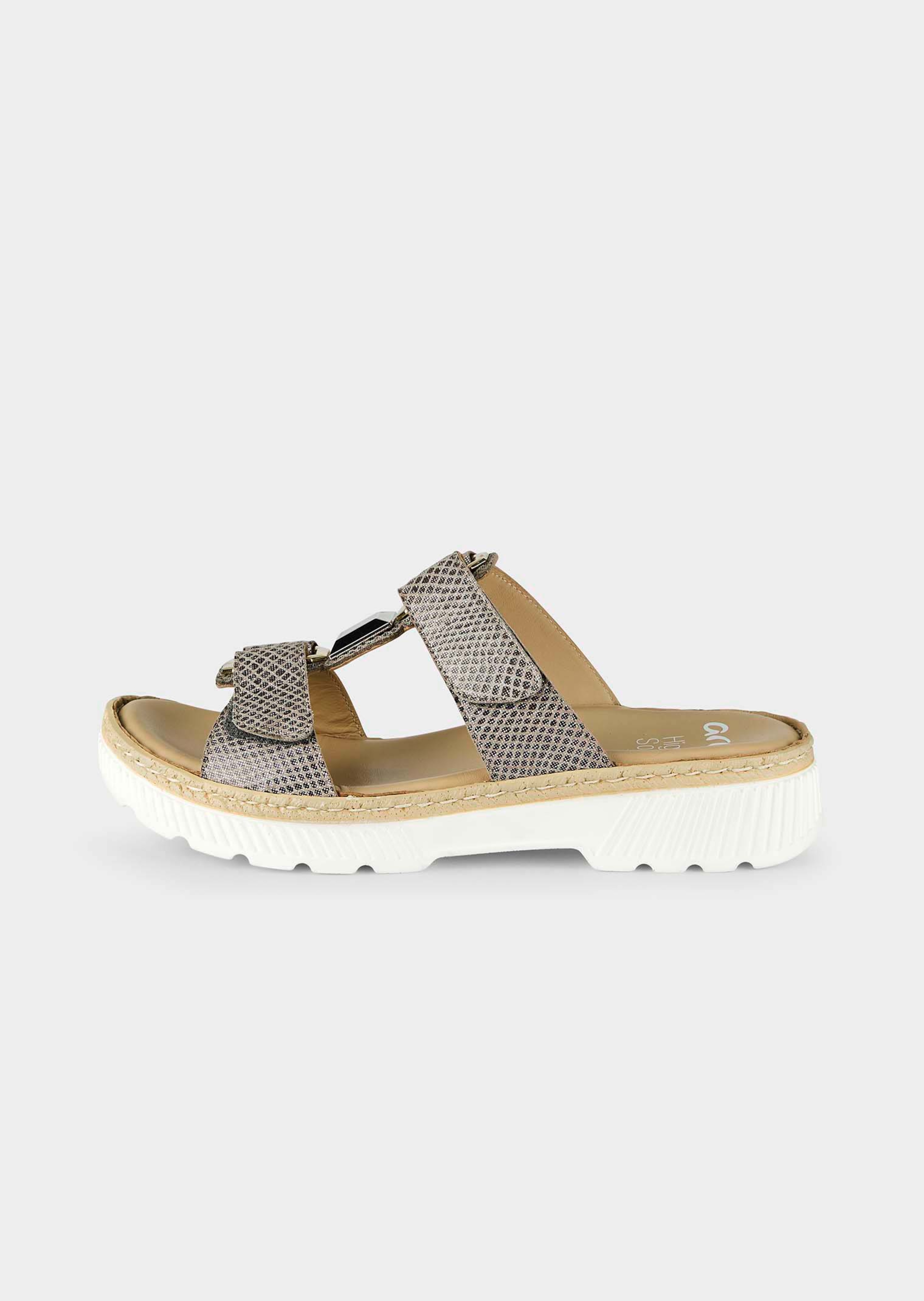 Pantoletten "Capri" von ARA – ein Blickfang für jeden Sommer-Look! Das Leder ist mit einem irisierenden Foliendruck verziert, goldfarbige Schmuckelemente setzen feminine Akzente. Mit doppeltem Klettverschluss für komfortables Anziehen. Die HighSoft-Ausstattung verleiht Ihnen ein Wohlgefühl beim Tragen! Mit rutschhemmender PU-Laufsohle.