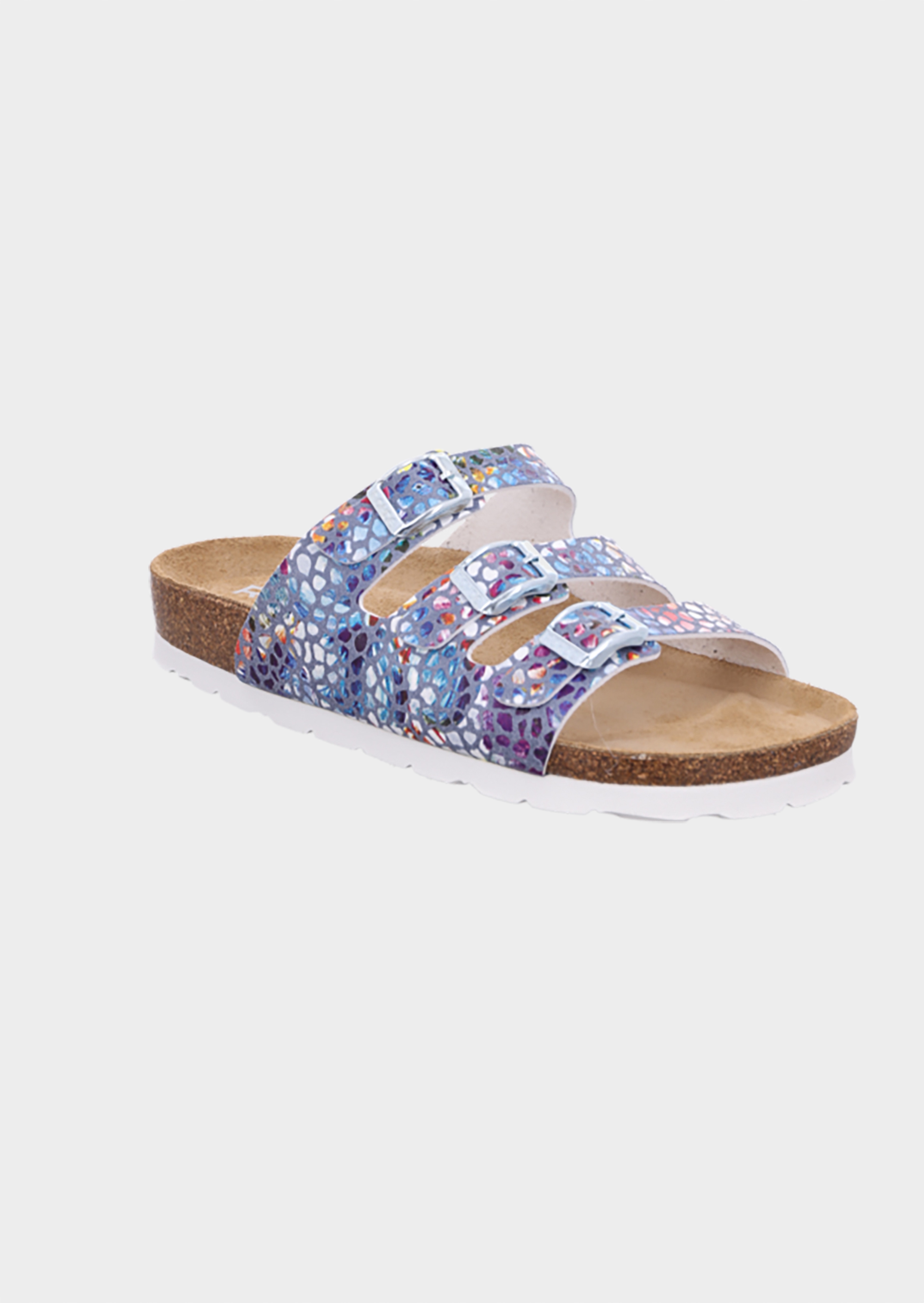 Diese Pantolette von ROHDE kommt mit einer rutschfesten Sohle und einem tiefen, atmungsaktiven Fußbett mit flexiblem Kork-Latex-Kern. Das Innenfutter sorgt für ein weiches Tragegefühl, und die verstellbaren Schnallen der Pantolette gewährleisten eine variable Passform.