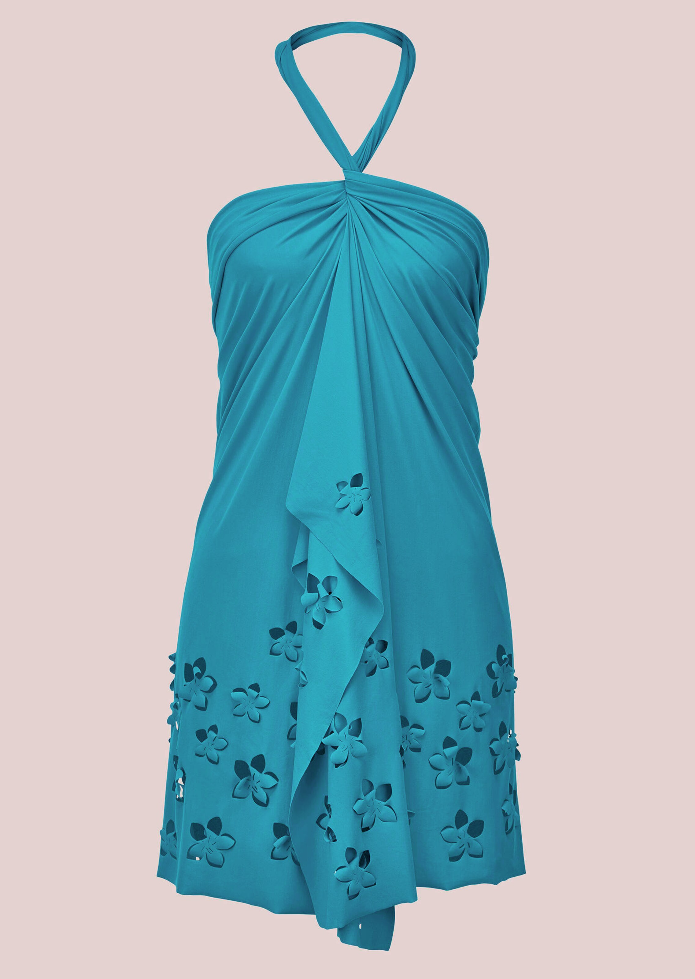 Dieser Multistyle-Pareo überzeugt mit filigranen, durchbrochenen 3D-Blumenmustern. Der elastische Stoff lässt sich nach Belieben wickeln, binden oder drapieren. Ob als schicker Strandrock, elegantes Minikleid, Wickelrock mit Raffung oder sommerlicher Schal – immer neue Looks sind im Handumdrehen möglich. Ein vielseitiges Accessoire, das jeden Strand- und Urlaubstag stilvoll begleitet.