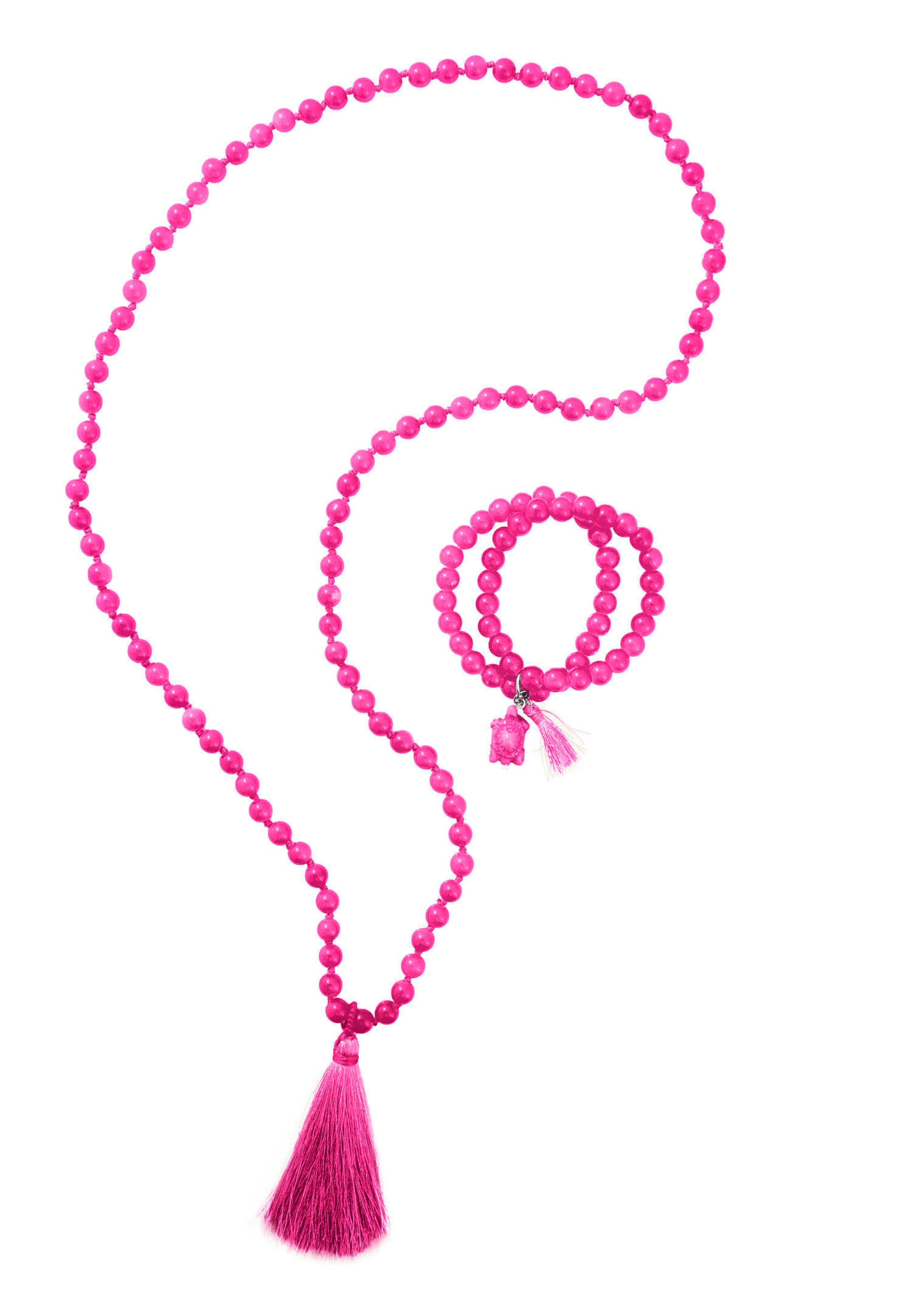Perlenketten-Set bestehend aus einer Kette in Y-Form und einem zweireihigen, elastischen Armband. Die zauberhaften Glasperlen sind einzeln verknotet und "kleben" nicht aneinander – so bleiben sie flexibel und machen jede Bewegung mit, für ein einzigartiges Tragegefühl. Liebevolle Details wie farblich passende Quasten sowie eine kleine Schildkröte am Armband verleihen dem Set eine verspielte Note. Wählen Sie Ihre persönliche Lieblingsfarbe und vervollständigen Sie Ihren Look mit diesem wunderschönen Perlenketten-Set. Länge Kette: ca. 96 cm + Quaste: ca. 8 cm. Durchmesser Armband: 18,5 cm.