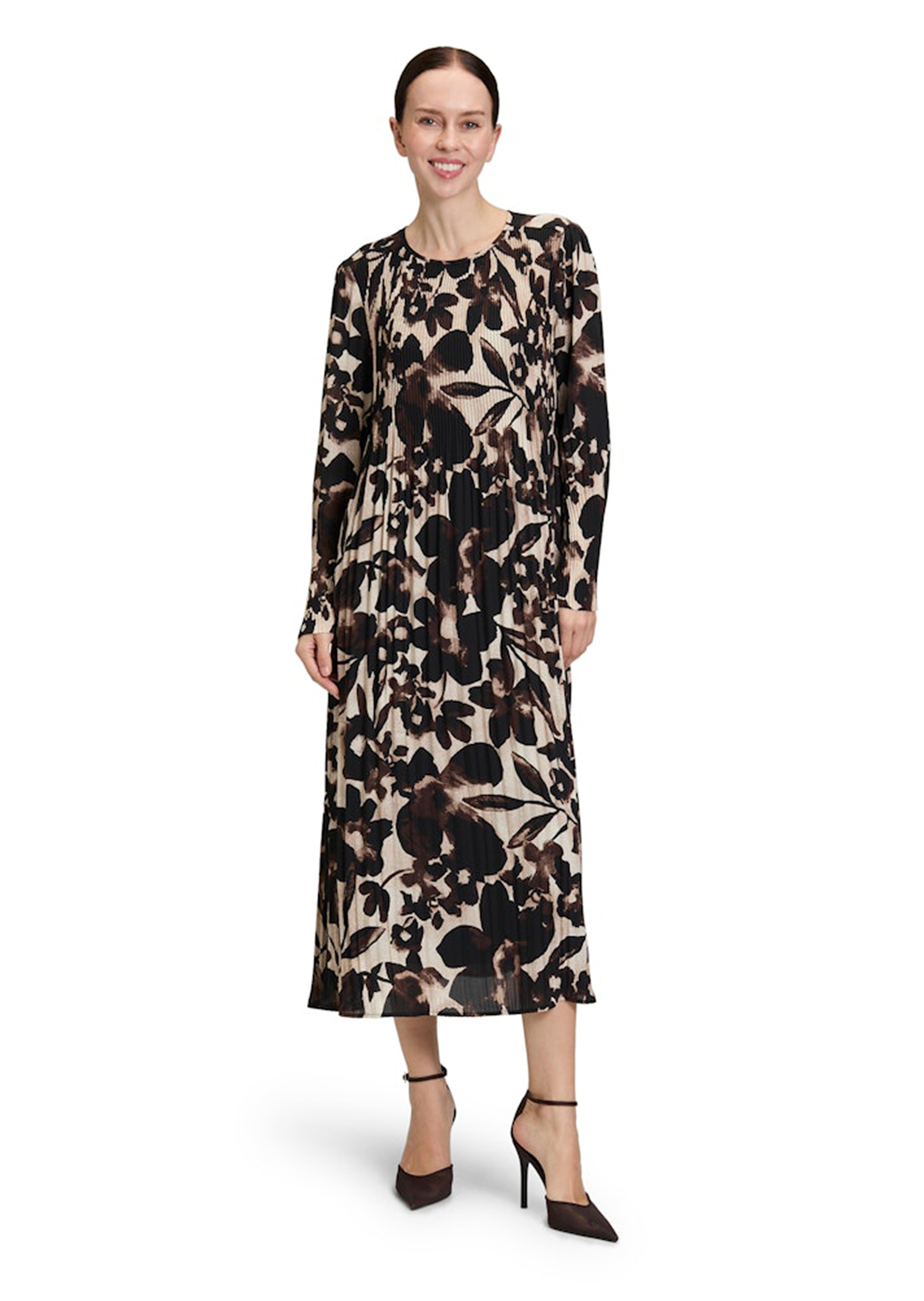Plisseekleid von BETTY BARCLAY mit femininem Allover-Blütenmuster. Das Modell ist an Oberteil und Ärmelsaum fein plissiert, die Falten springen nach unten auf und verleihen dem Rockteil Schwung – perfekt für stilvolle Auftritte, Tanzabende oder Feste. Mit Rundhalsausschnitt, kleinem Knopfverschluss im Rücken und langen Ärmeln. Das Jerseyfutter garantiert besten Tragekomfort. Länge ca. 125 cm in Gr. 46.