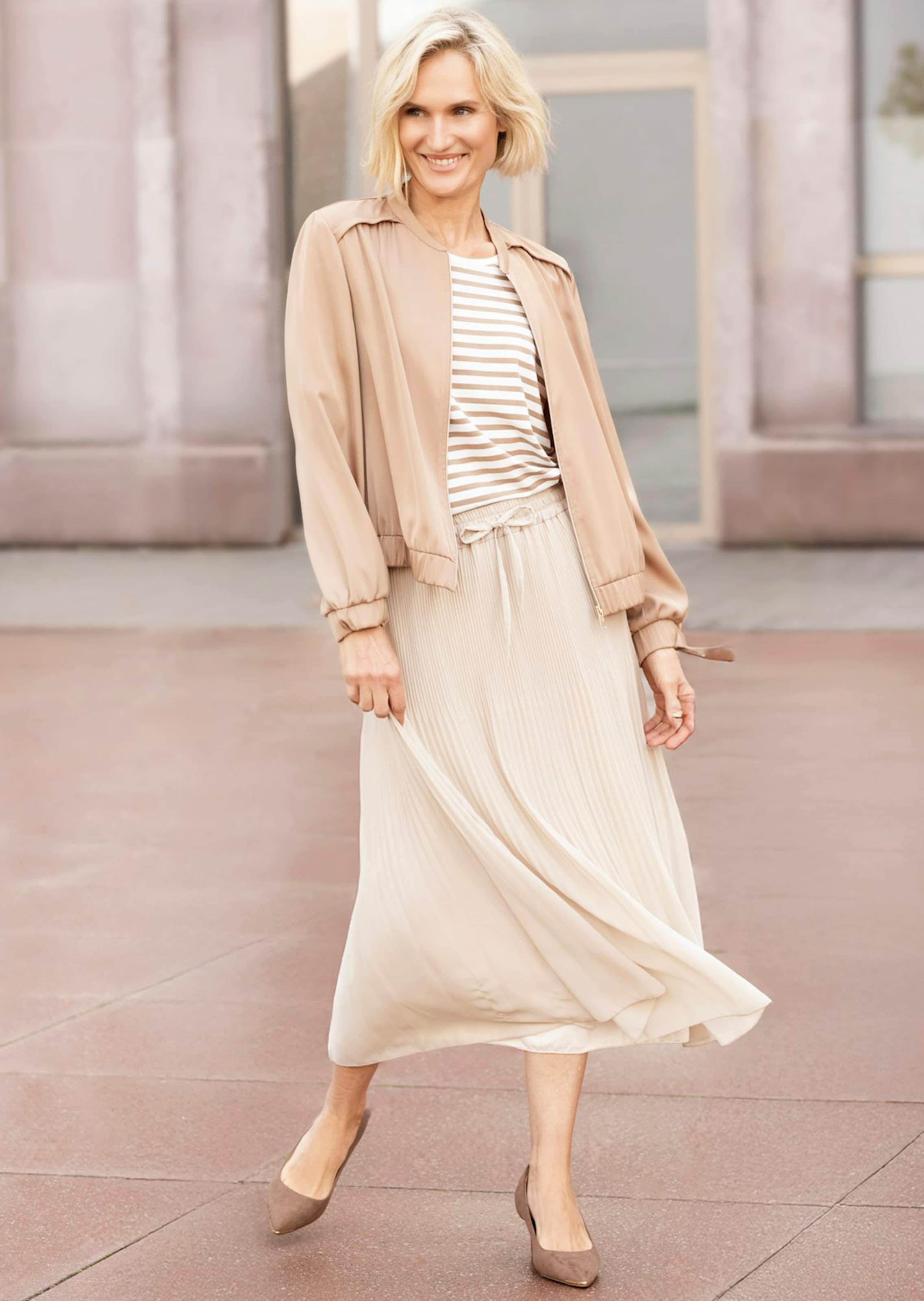 Plisseerock von FRANK WALDER mit abgestuftem Faltenverlauf – oben fein, nach unten zunehmend größer und weiter, das wirkt besonders raffiniert. Das formstabile Plissee behält auch nach dem Waschen seine charakteristische Optik. Der Rundumschlupfbund ist mit einem Tunnelzug gearbeitet, so können Sie die Weite individuell regulieren. Mit weichem Single-Jersey gefüttert. Länge ca. 80 cm in Gr. 46.