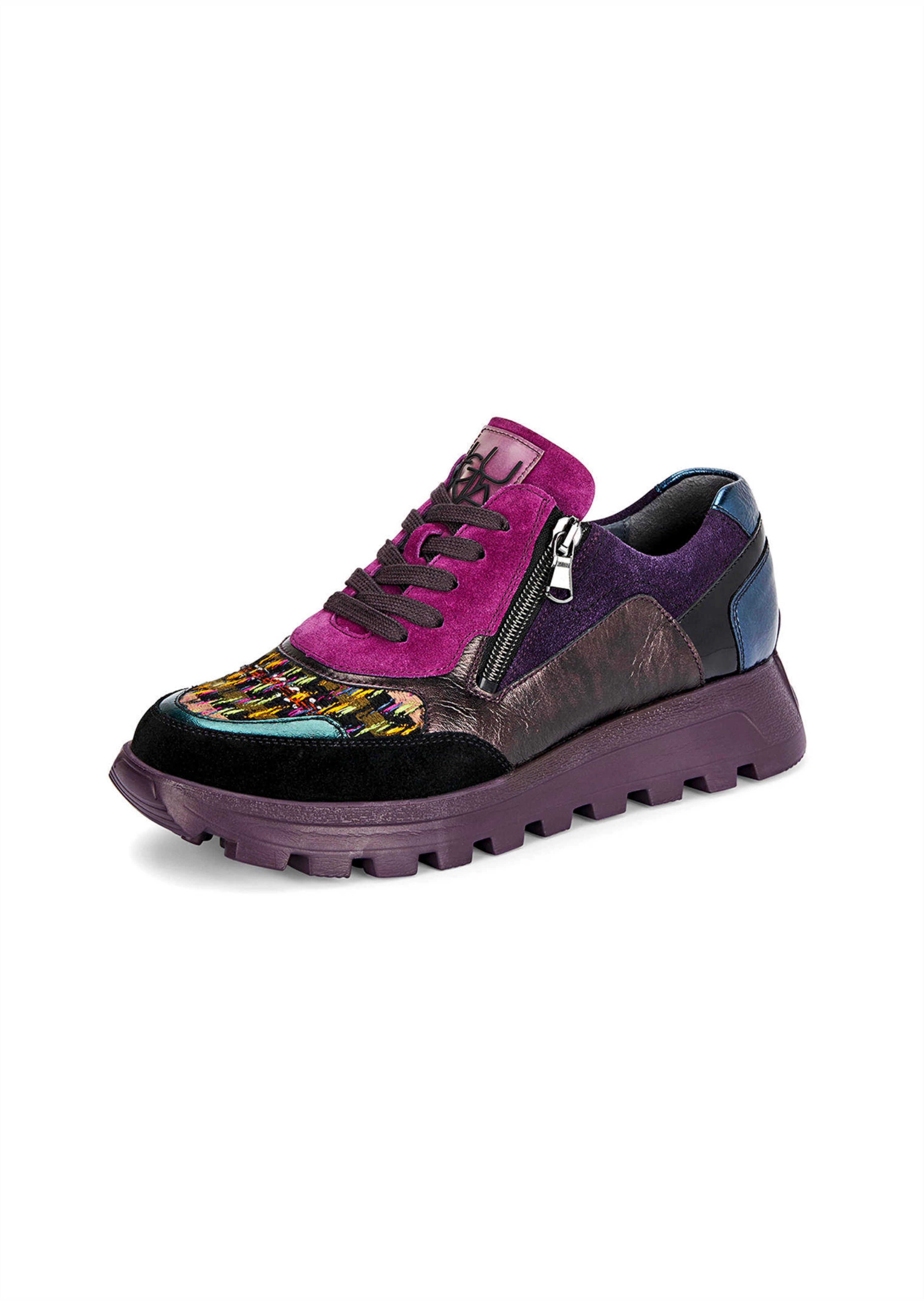 Sneaker AJALA-SOFT von WALDLÄUFER, der sich im trendstarken Leder-Textil-Mix präsentiert. Die robuste EVA-Sohle macht den Schuh trittfest und modern. Schnürung und Reißverschluss sorgen für sicheren Halt. Mit textilem Futter und Wechselfußbett.