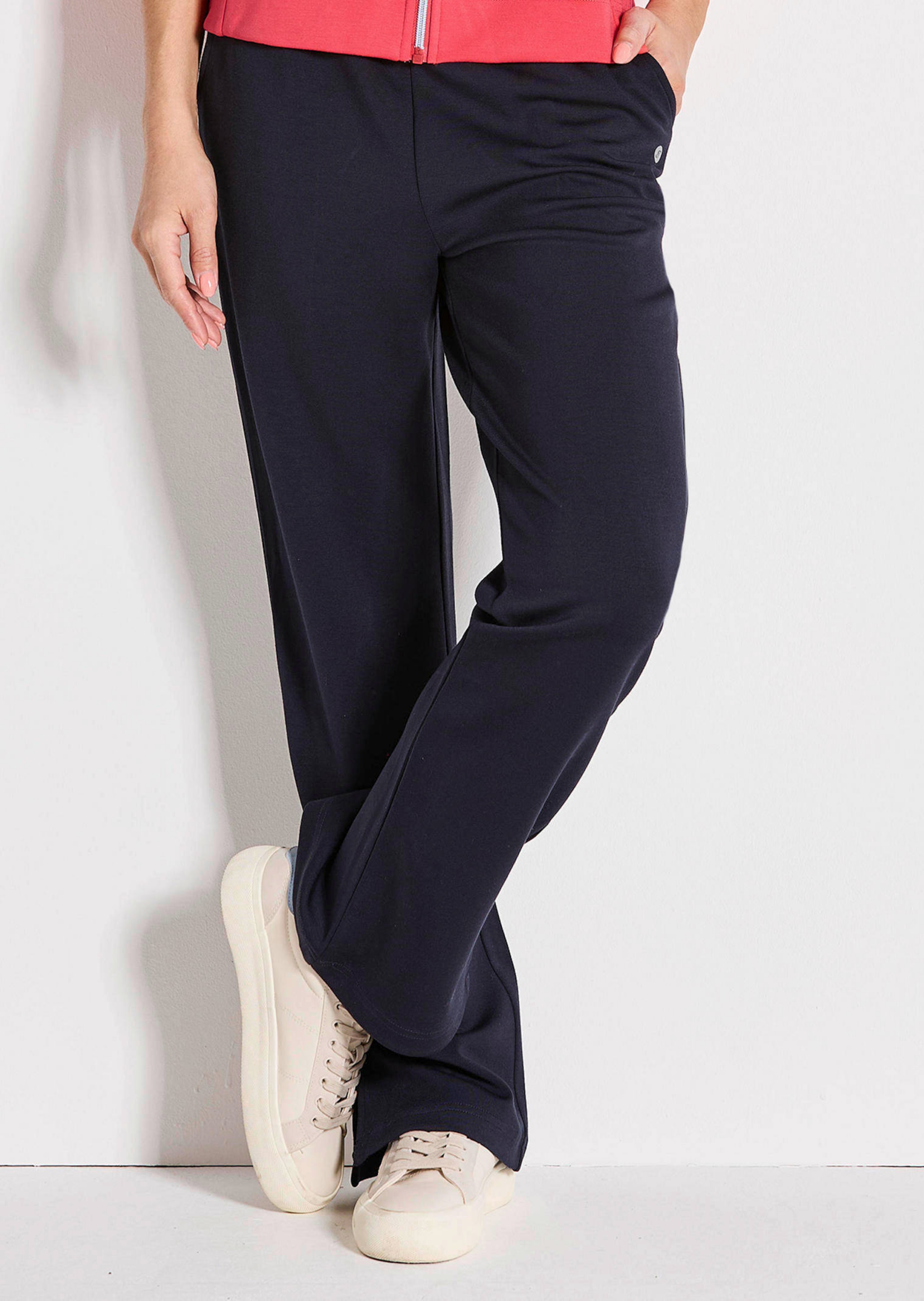 Freizeithose von JOY in hochwertiger, softer Modalqualität mit Stretch. Der seitliche Streifenbesatz schenkt Ihnen eine schmale Silhouette. Leger geschnitten mit geraden Abschlüssen und Seitenschlitzen sitzt die Hose äußerst bequem. Mit Schlupfbund, eine Zugkordel reguliert die Weite. Perfekt für Sport, Freizeit oder lässig kombiniert mit T-Shirt und Jacke. Innenbeinlänge ca. 70 cm in Gr. 46.