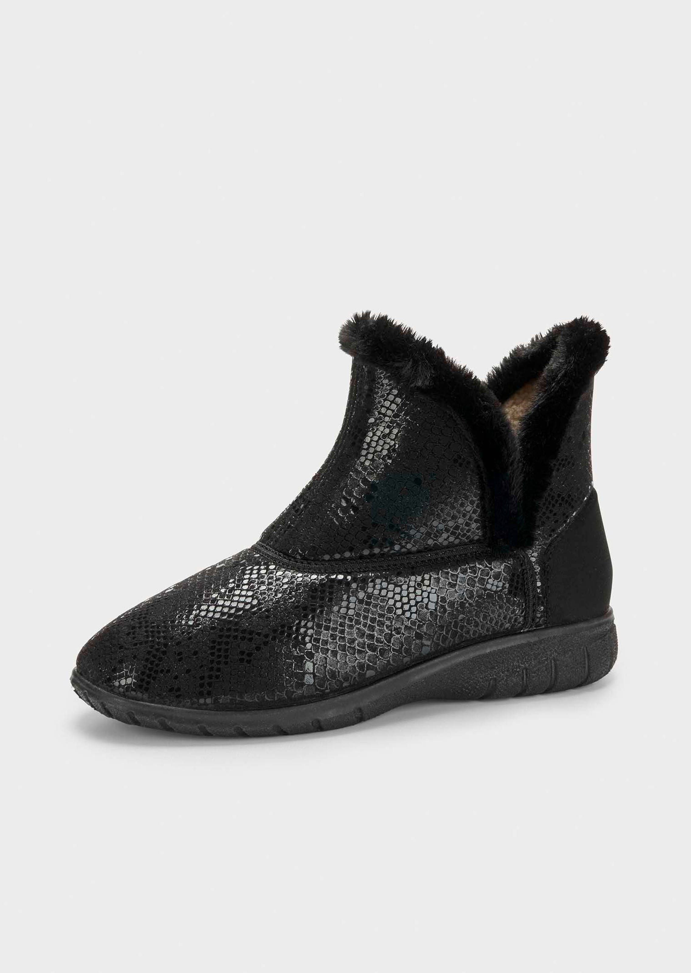 Stiefeletten mit weitem Schaft – komfortables Modell zum Reinschlüpfen. Stretchbequemes Obermaterial mit Elasthan. Innen warm gefüttert. Rutschfeste Gummilaufsohle.