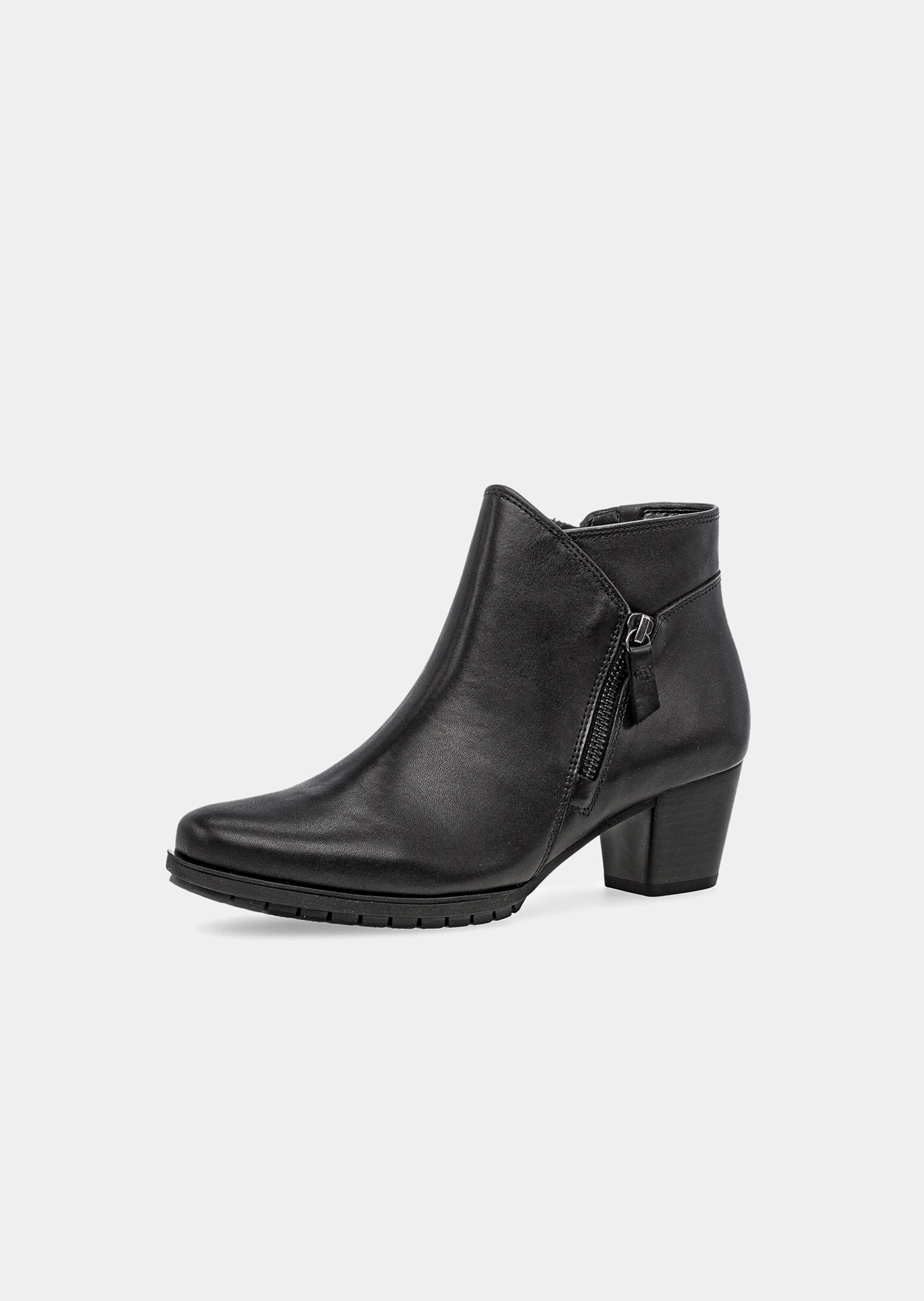 Stiefelette von GABOR aus schönem Glattleder. Der Reißverschluss macht das An- und Ausziehen leicht und bequem. Mit angenehmer Textil-Innenausstattung und bequemer TR-Laufsohle.