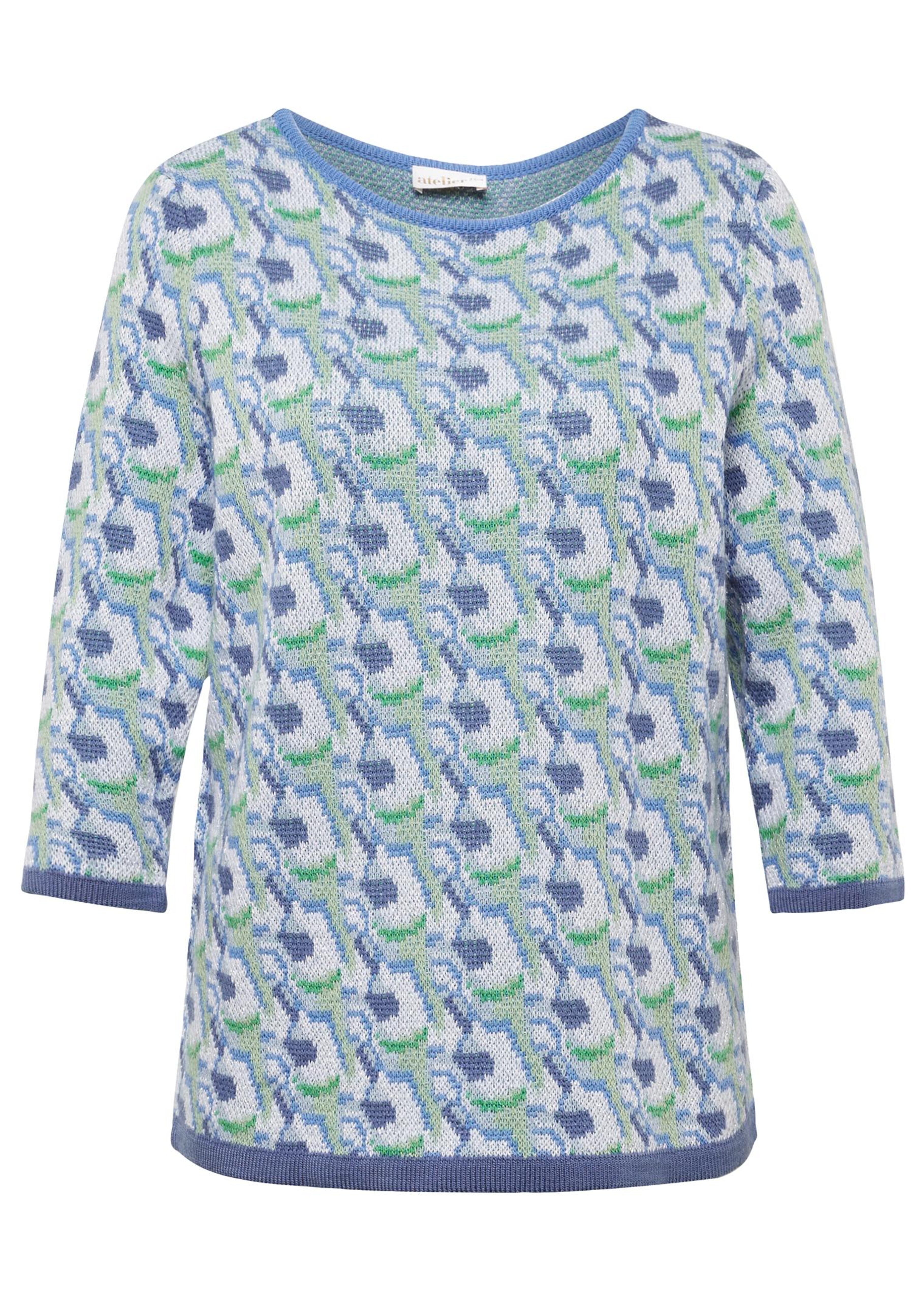 Jacquard-Pullover, der durch sein aufwendig gearbeitetes, frisches Jacquardmuster von sich reden macht. Eingewebte Glanzgarne setzen darauf elegante Akzente. Mit U-Boot-Ausschnitt, 3/4-Ärmeln und kontrastfarbigen Abschlüssen. Für höchsten Tragekomfort garantiert der weiche Baumwollmix. Länge ca. 67 cm in Gr. 46, ca, 63 cm in Gr. 23.