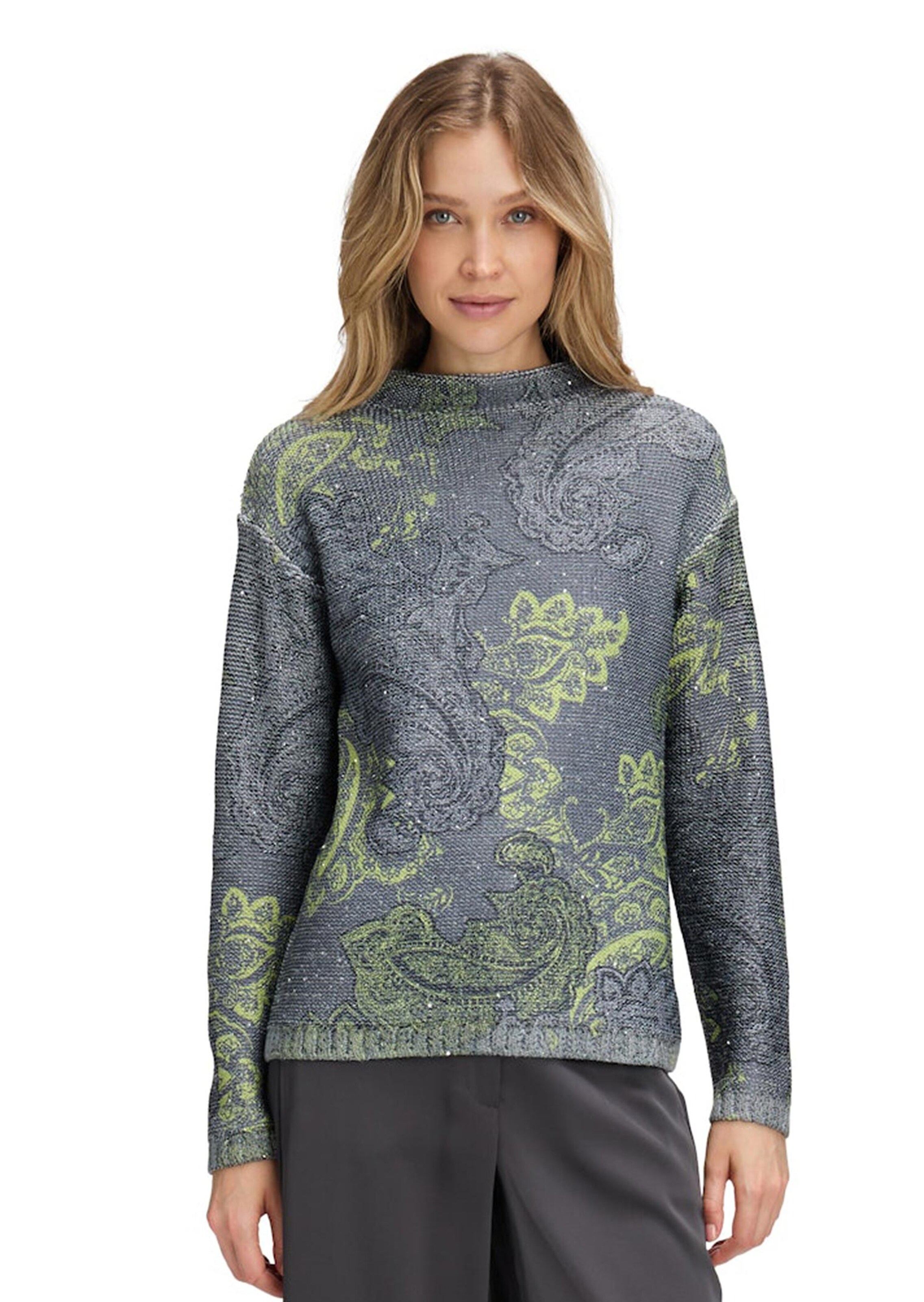 Druckpullover von BETTY BARCLAY in Linksstrick, der das bedruckte Paisley-Dessin geschickt in Szene setzt. FĂ¼r dezenten Glanz sorgt gezielt das Effektgarn mit Pailletten. Mit halsfernem Stehkragen, gerippten AbschlĂ¼ssen und aus einer weichen Mischqualität mit Baumwolle sind Sie mit diesem Modell auch im Alltag stets modisch gekleidet. Länge ca. 66 cm in Gr. 46.