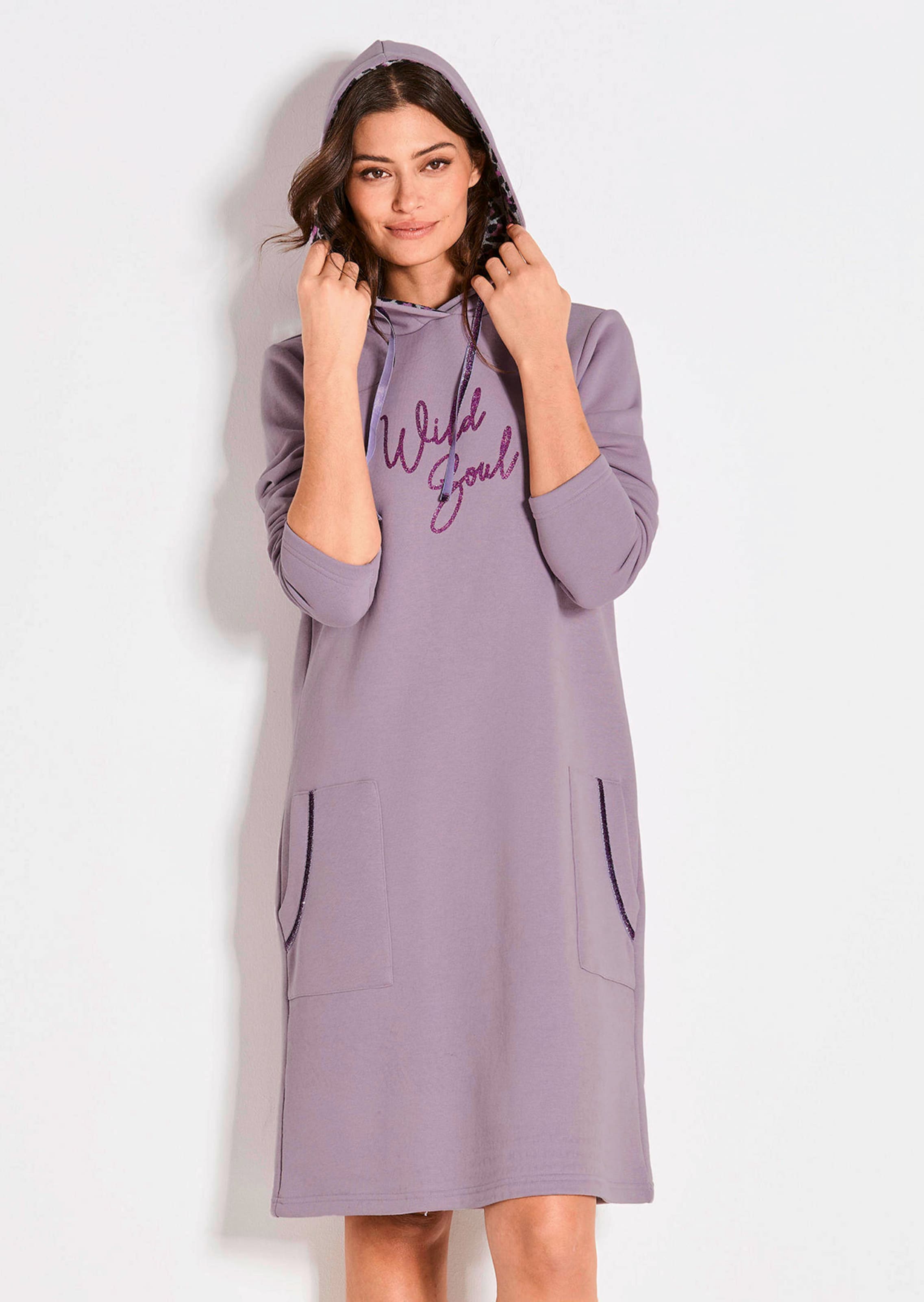 Hauskleid von COMODO aus dichter, hochwertiger Sweatware mit hohem Baumwollanteil und flauschig weicher Innenseite – so bietet das Kleid ein besonders angenehmes Tragegefühl. Die Kapuze ist mit softem Leoprint-Jersey gefüttert und mit einem Bindeband in Glitzeroptik versehen – passend zum funkelnden Schriftzug als Frontmotiv. Zwei aufgesetzte Eingriffstaschen mit Glitzerband, lange Ärmel und der locker fallende, gerade Schnitt geben dem Sweatkleid seinen unwiderstehlich lässigen Look. Länge ca. 99 cm in Gr. 44/46, ca. 95 cm in Gr. 22/23.