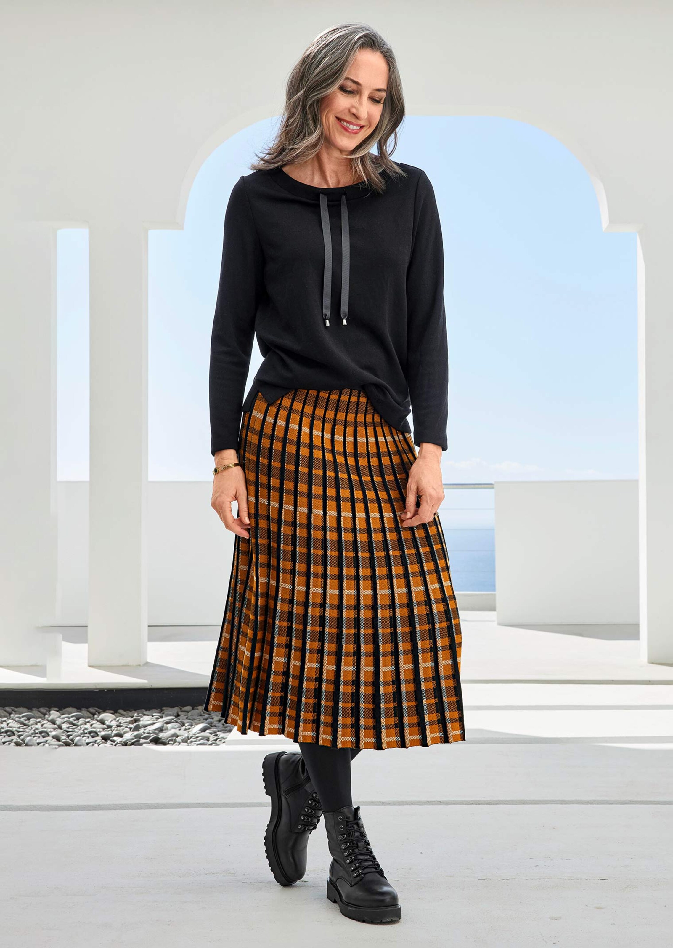Shirtpullover in kastiger Form – Ihr lässiger Kombipartner im angesagten Sweatshirt-Stil. Der flach geformte Rundhalsausschnitt ist mit einer Zierkordel aus schimmerndem Ripsband und metallischen Enden in Szene gesetzt. Lange Ärmel und bequeme Seitennahtschlitze. Aus einer hautfreundlichen Viskosemischung. Länge ca. 66 cm in Gr. 46, ca. 62 cm in Gr. 23.