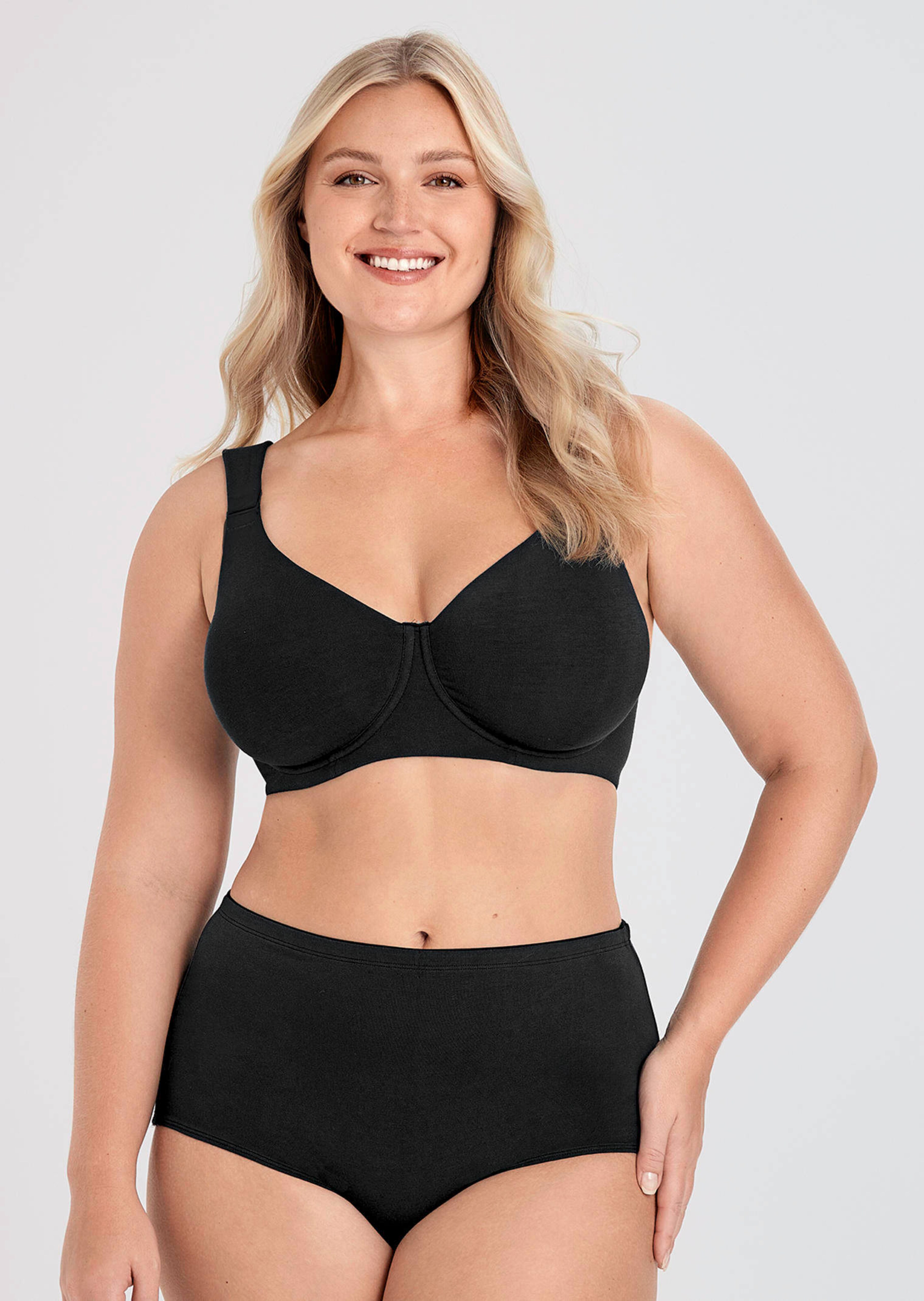 Bügel-BH von MISS MARY aus einer weichen Mischqualität mit Bio-Baumwolle – auch für empfindliche Haut geeignet! Schlichtes T-Shirt-Modell mit gemoldeten Cups und breiter Seiten- und Rückenpartie. Wattierte Träger und 3-fach verstellbarer Hakenverschluss.