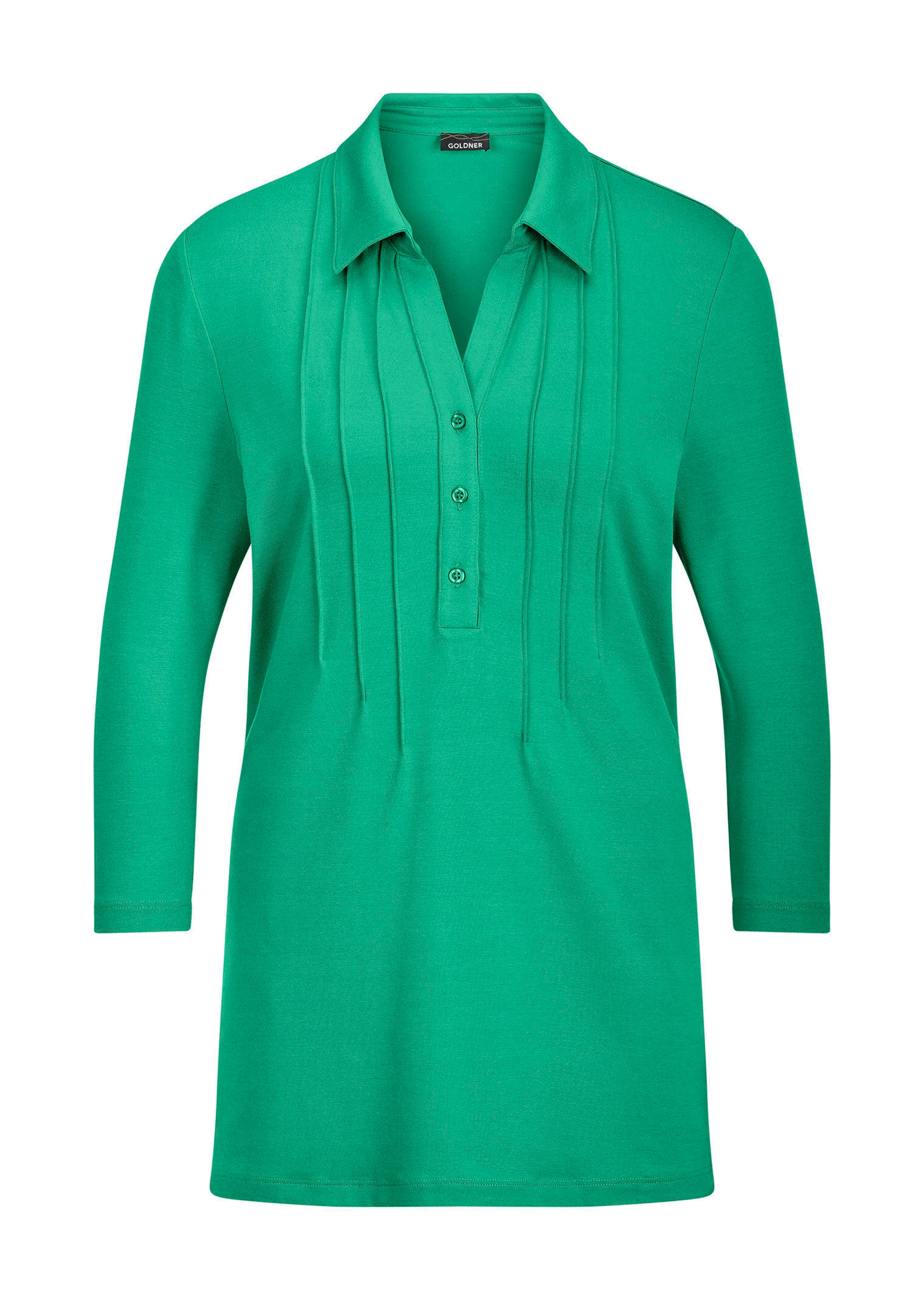 Tunikashirt mit streckenden Biesen, die nach unten aufspringen und eine schöne A-Linie zaubern – der längere Schnitt über den Po ist perfekt zu schmalen oder geraden Hosen und kaschiert die Bauchpartie vorteilhaft. Mit offenem Hemdkragen, kurzer Knopfleiste und 3/4-Ärmeln. Aus weichem Viskose-Jersey. Länge ca. 71 cm in Gr. 46, ca. 67 cm in Gr. 23.