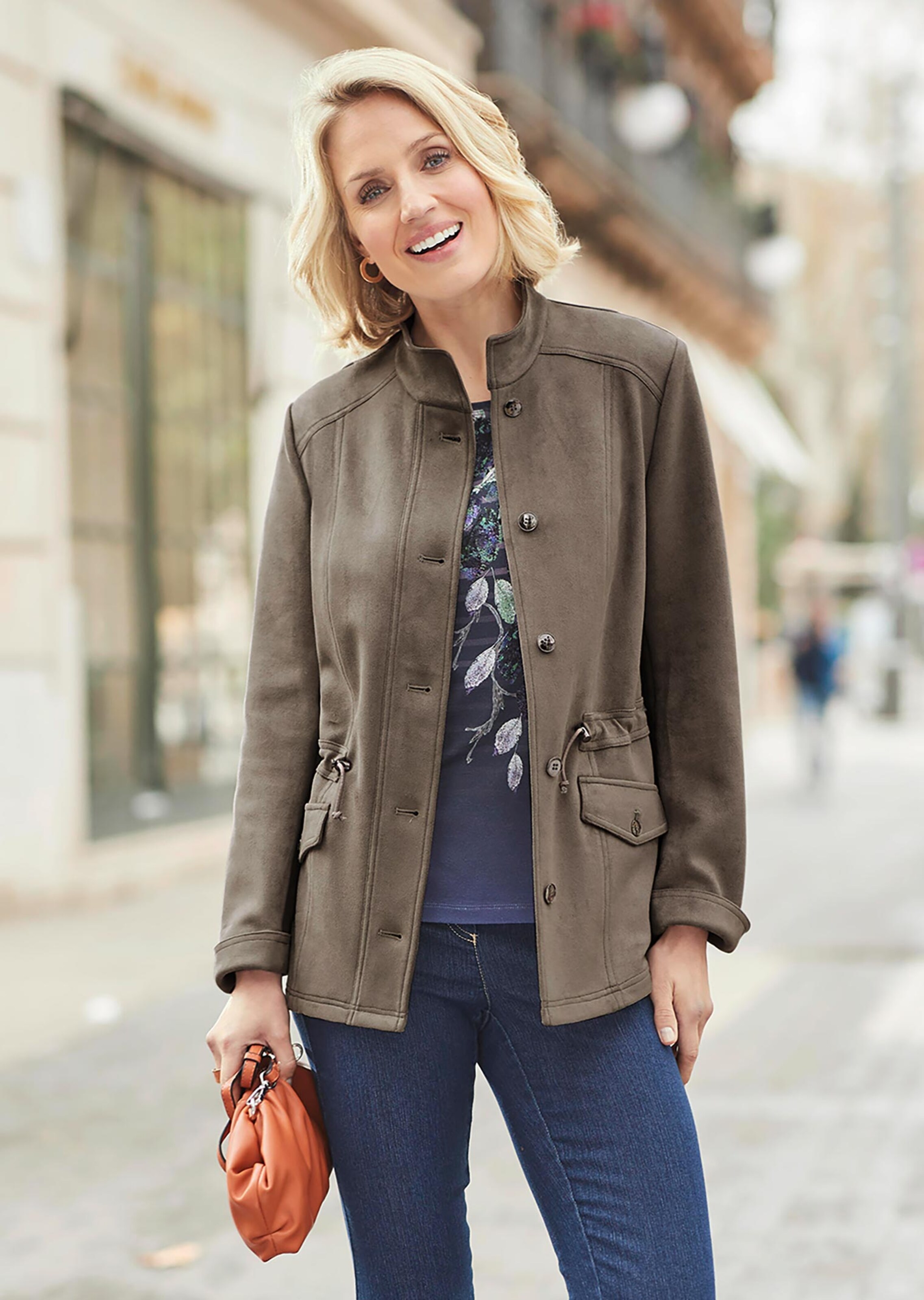 Keinomokkableiseri on laadukas vaate, jossa ajaton leikkaus ja väri; helppo yhdistellä. Samettisen pehmeä materiaali näyttää aidolta mokalta mutta on ihanan huoletonta. Vartaloa kaventavat ompeleet edessä ja vyötäröllä kiristysnauha. Pystykaulus, nappilista ja kaksi kookasta taskua. Pituus 71 cm koossa 46, 67 cm koossa 23.