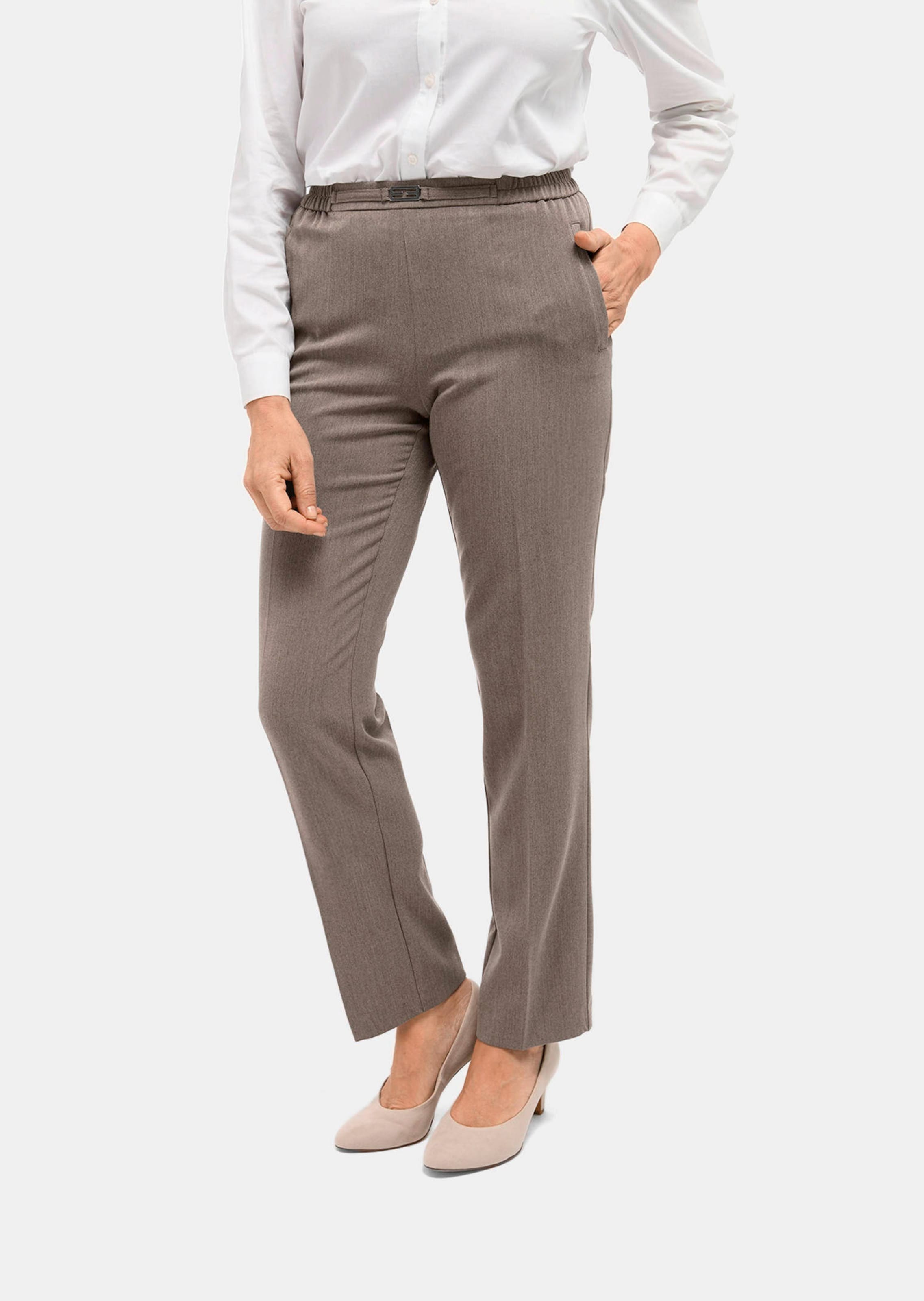 CARLA Professlan-housut, joissa mukava, joustava taakse jatkuva vyötärönauha. Sileä etupaneeli on viimeistelty elegantilla koristesoljella. Terereunaiset taskut ja siluettia pidentävät silitetyt prässit. Rypistymätön ja helppohoitoinen materiaali takaavat erinomaisen käyttömukavuuden. Lahkeen leveys n. 42 cm. Suorat lahkeet.