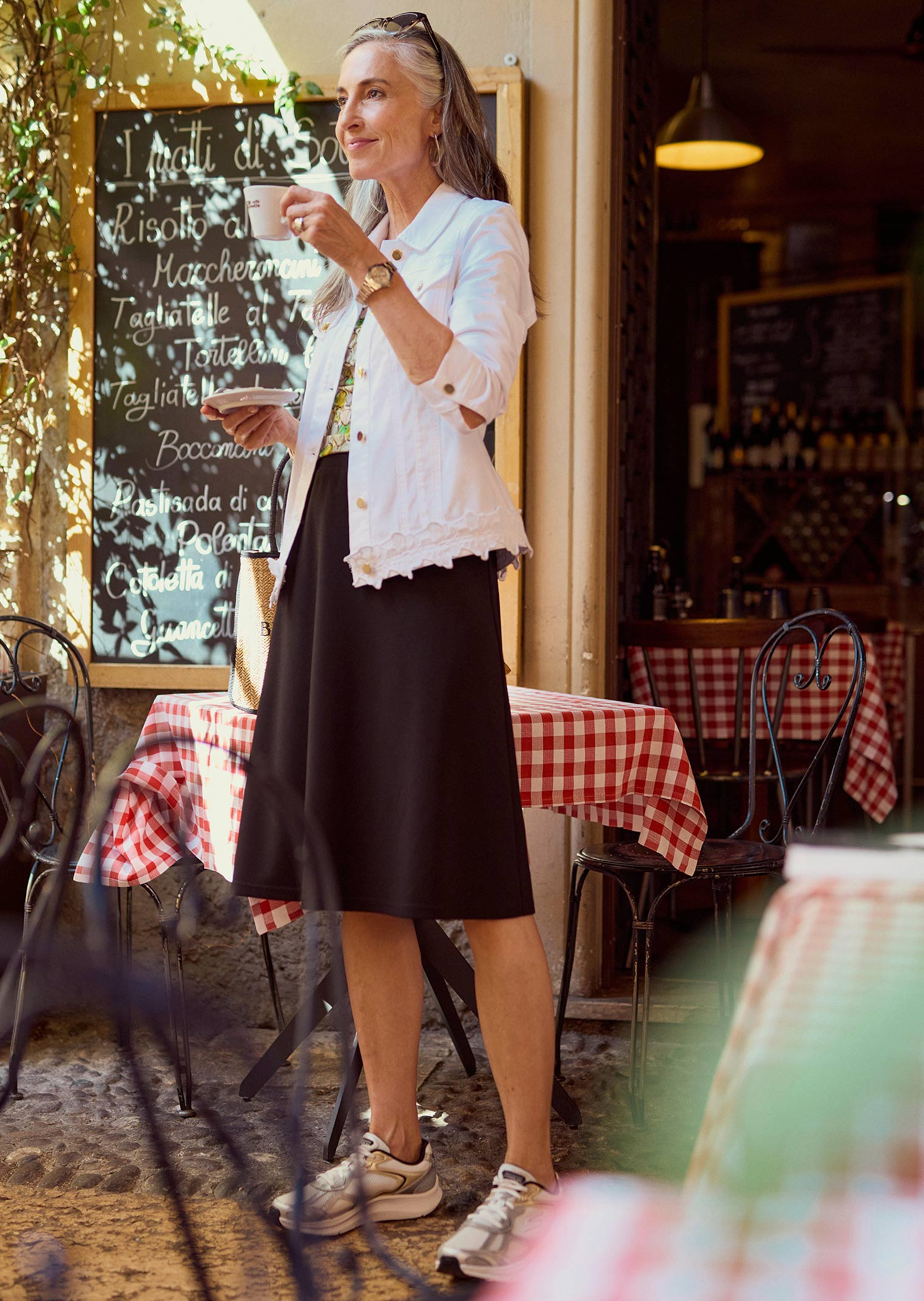 Sopii hyvin yhteen bleiserien ja lyhyiden neuletakkien kanssa