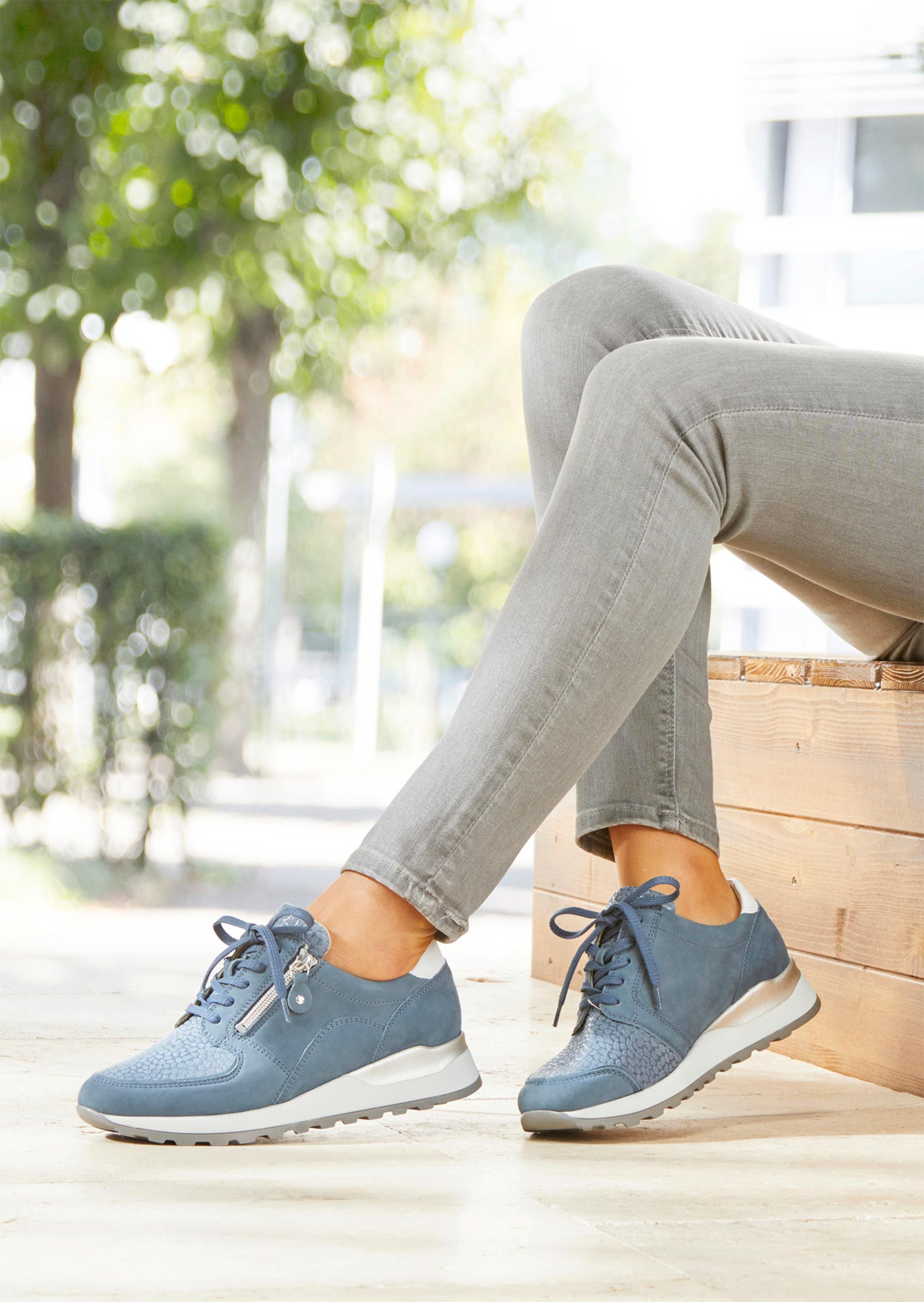 WALDLÄUFER sneakerit nahkaa ja tekstiiliä. Helpot laittaa jalkaan nauhojen ja vetoketjun ansiosta. Tekstiilivuori ja irrotettava pohjallinen, jossa tekstiilipäällinen. PU-ilmatyynyulkopohja – vaimentaa joka askeleen.
