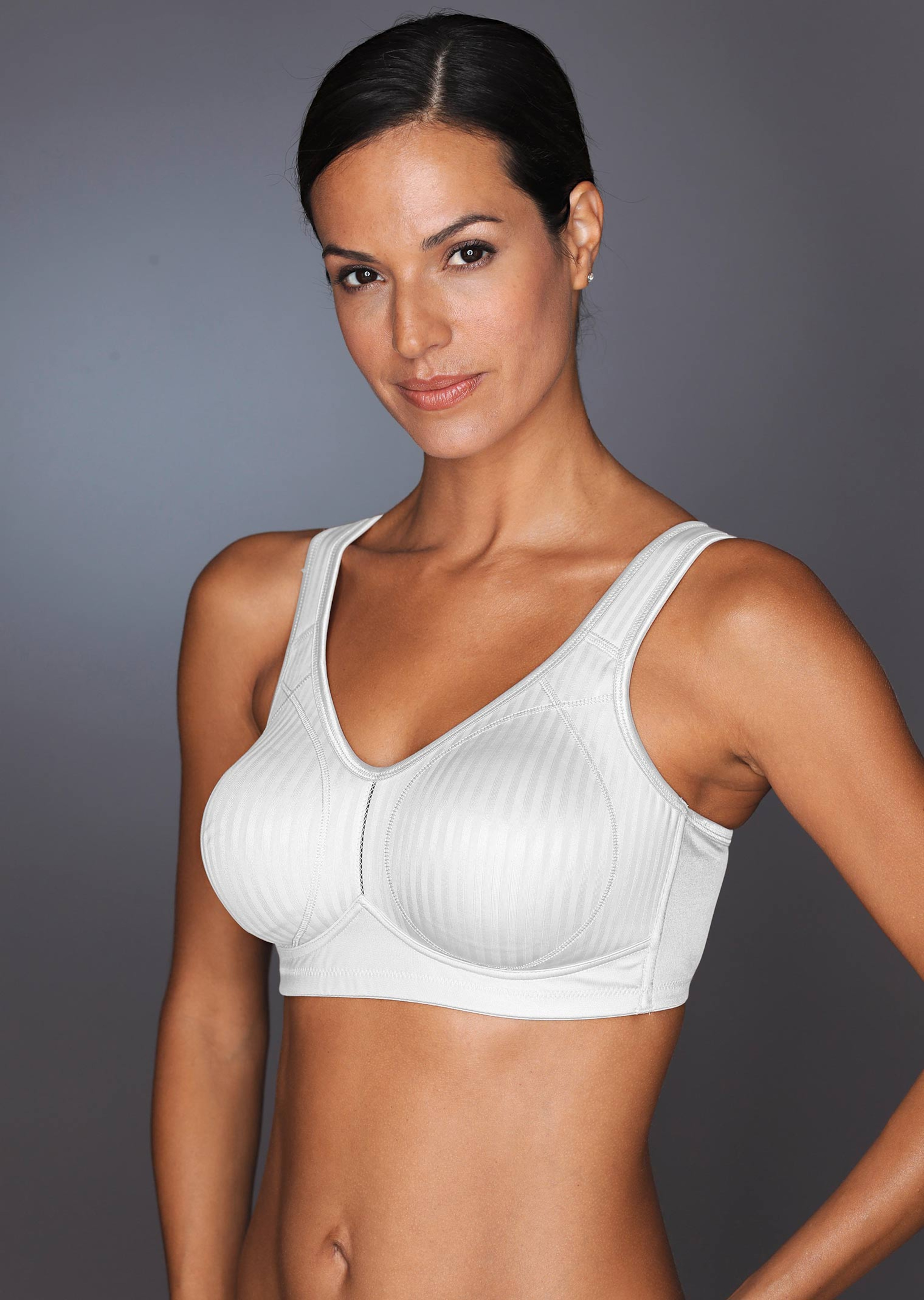 Rintaliivit ilman kaaritukia ovat hyvänmalliset. Hennosti hohtava, hillitysti raitakuosinen materiaali mukautuu vartaloon pehmeästi. Leveät, vuorilliset, rasitusta vähentävät olkaimet antavat hyvin tukea ja ovat takaa säädettävät. Pehmeä vuorillinen rinnanalusnauha ja vahvistetut kupit.