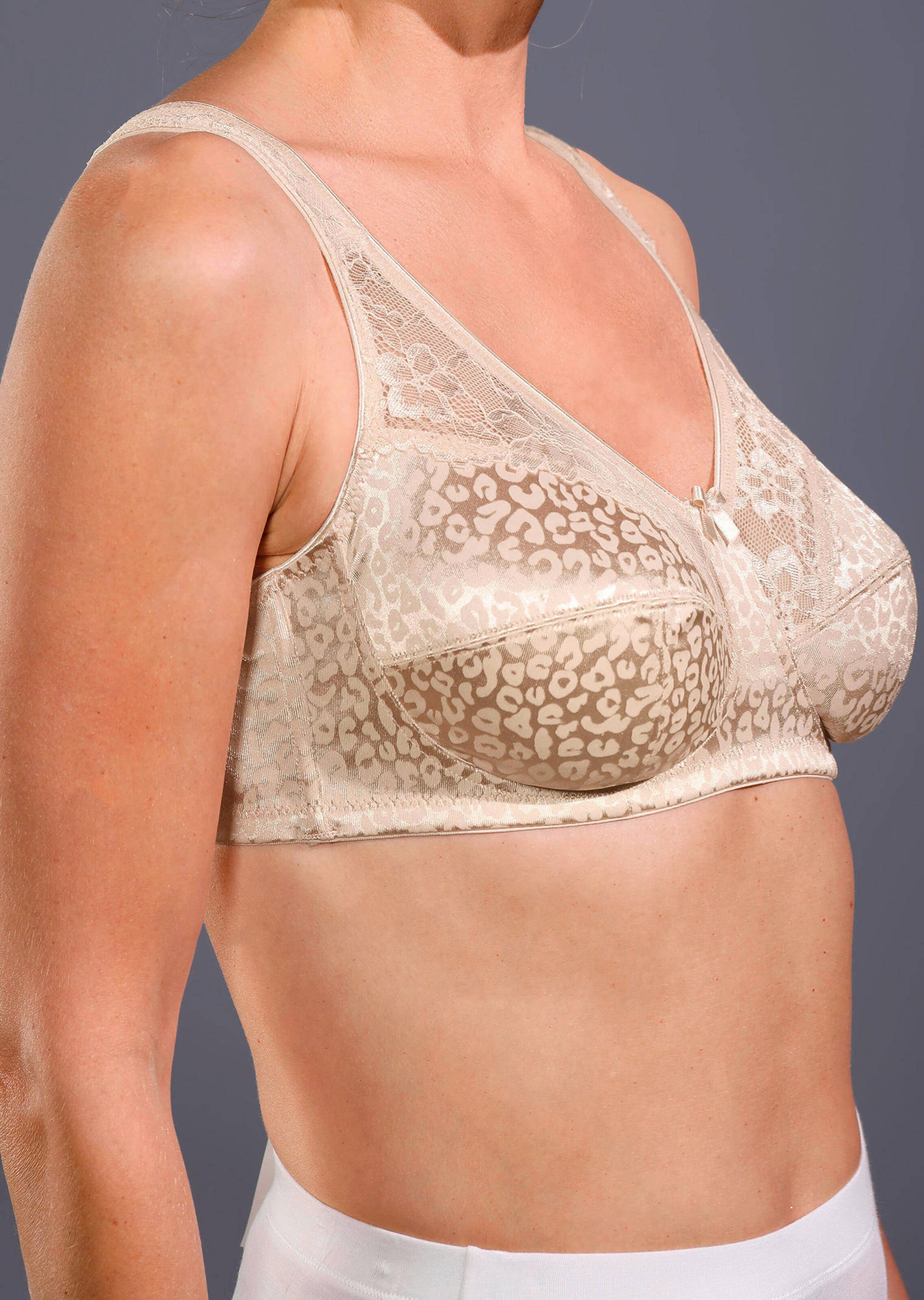 Beha van SASSA met fijn glanzend jacquardmotief voor een chique look. De beha zonder beugels ziet er aantrekkelijk uit door de luchtige, elastische kant langs de bovenkant van de cups, die naadloos in de bandjes overgaat. De 3-delige cups hebben baleintjes opzij voor extra steun. De onderborstband is zacht gevoerd en biedt optimaal comfort. De achtersluiting is 3-voudig verstelbaar en de bandjes kunnen achter individueel in de lengte worden aangepast.