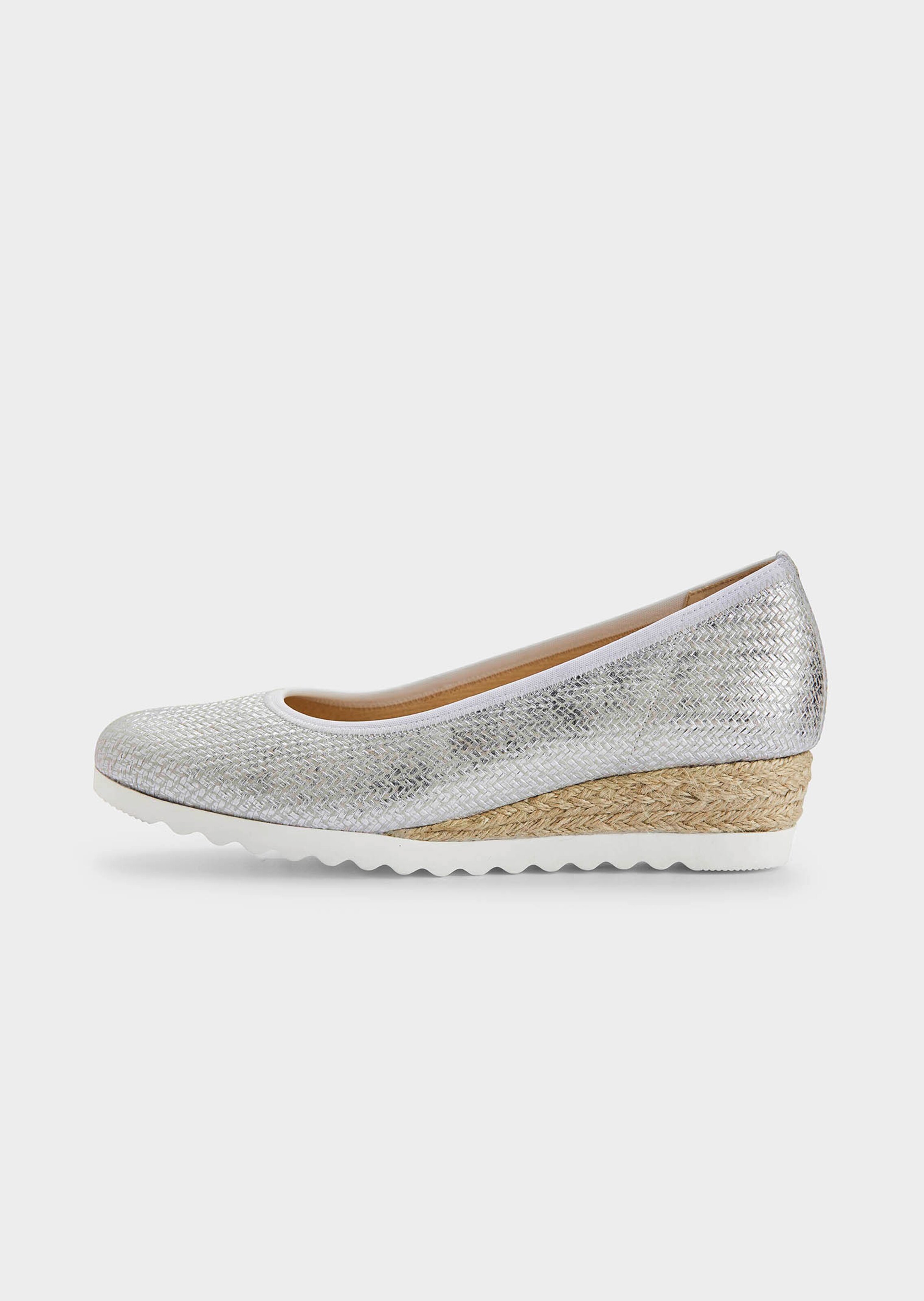 GABOR Comfortin GENOA ballerinnoissa yhdistyvät kesäinen ilme ja ihanteellinen käyttömukavuus. Päällinen ja pohjallinen nahkaa. Fleecevuori on miellyttävän tuntuinen. Kiilapohja on hiekan värisissä ja valkoisissa päällystetty juutilla, laivastonsinisissä korkilla. Kevyt TR-ulkopohja.