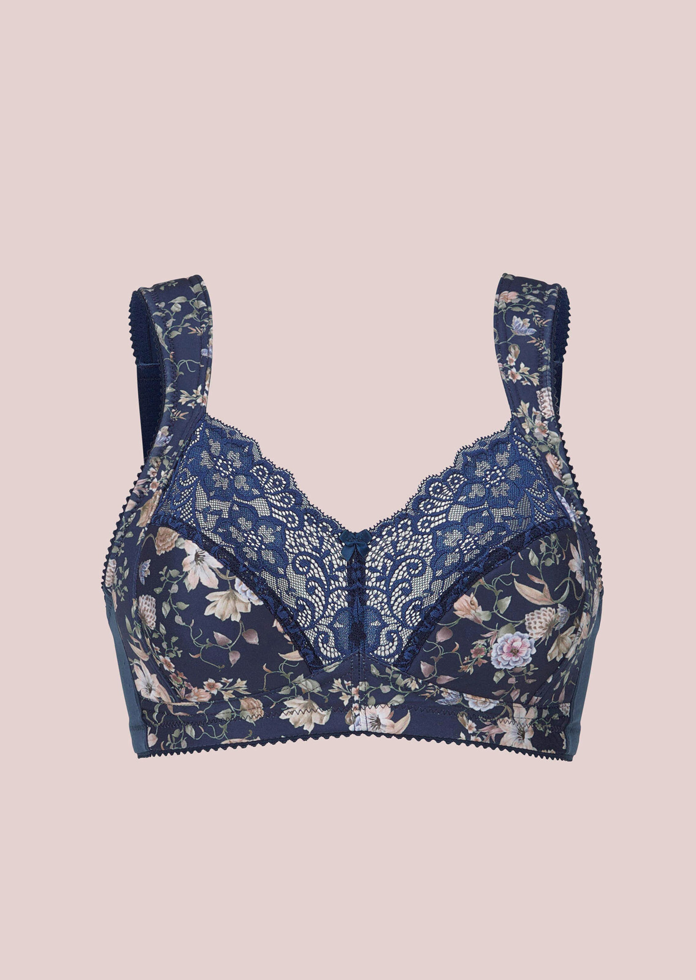Vyötärömalliset alushousut, joita koristaa etupuolella upean kaunis kukkakuosi. Sivuilla olevat pitsiosiot antavat ihon kuultaa hienovaraisesti läpi, kun taas takaosa on sileä ja mattakiiltävästä materiaalista valmistettu. Pehmeässä, joustavassa vyötärössä ja lahkeensuissa toistuu pitsimäinen ilme. Erinomainen käyttömukavuus pehmeän mikrokuitutuntuman ansiosta. Puuvillavuorattu haaraosa.