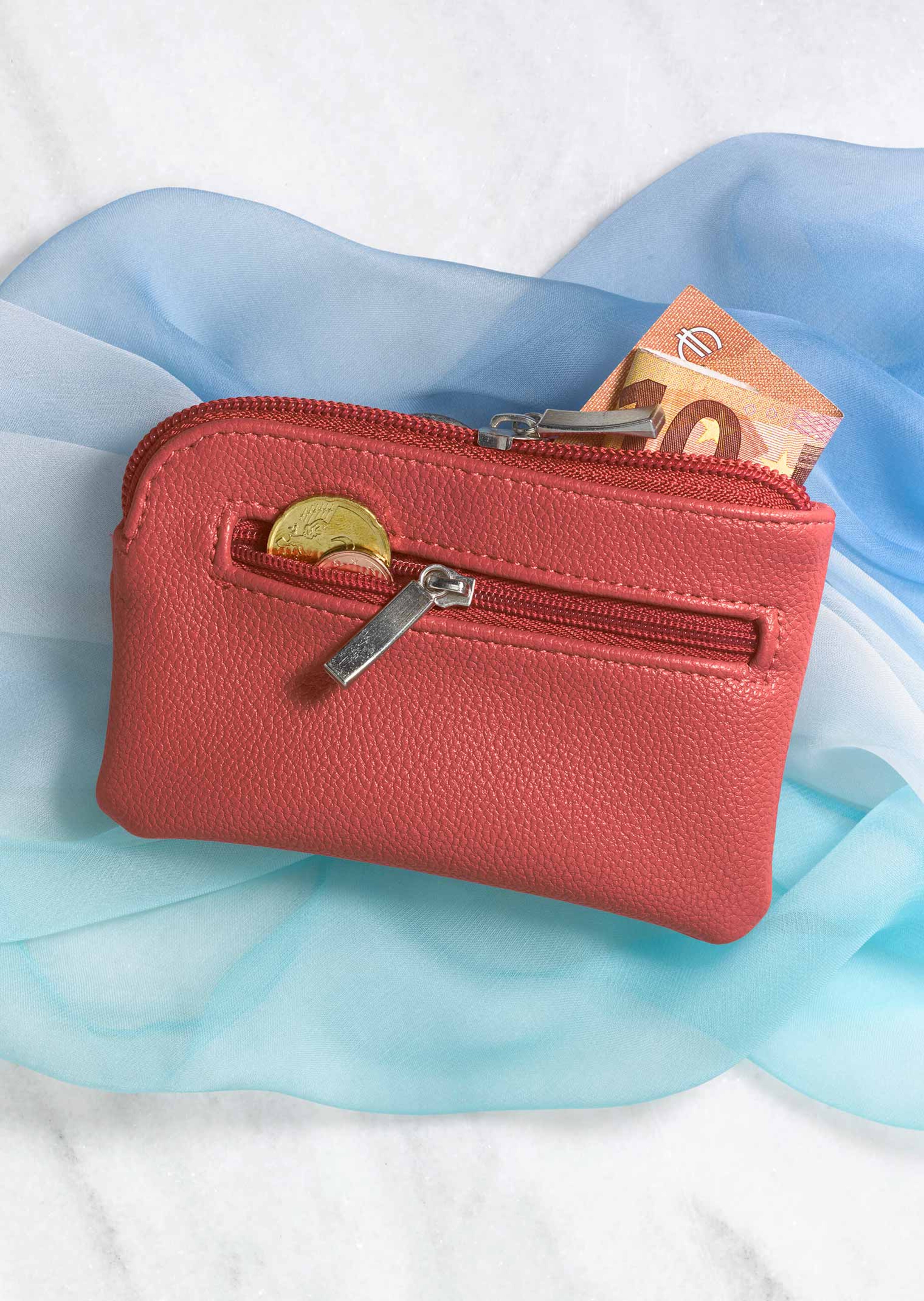 Kätevänkokoisessa minilompakossa on kaksi vetoketjullista taskua, joihin mahtuu setelit, kolikot ja kortit. Koristeena painettu ateljeelogo. Muodikas väri. Pehmeää keinonahkaa.