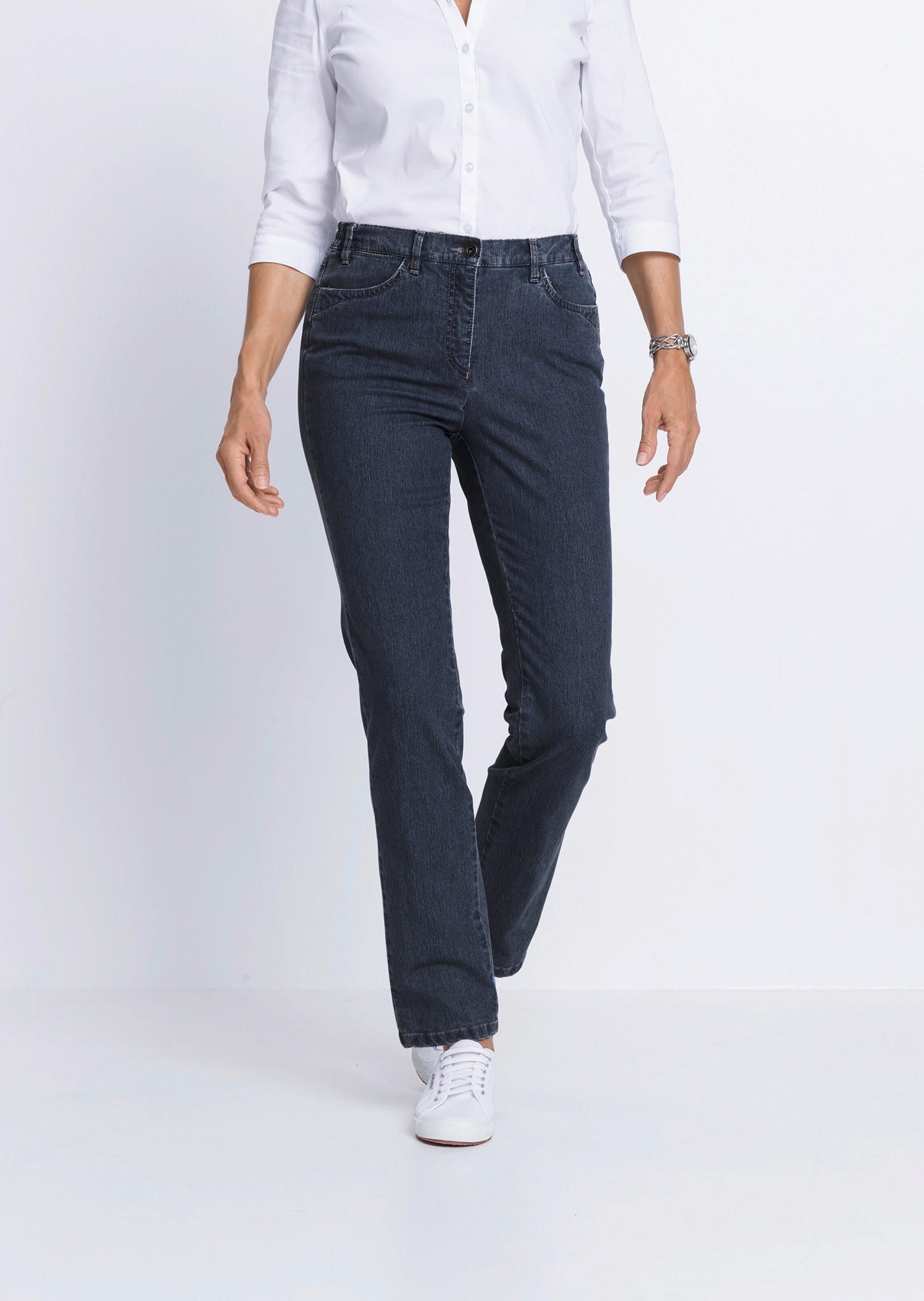 LOUISA-farkuissa on sivuilta joustava vyötärökaitale ja 5 taskun malli. Materiaali on erittäin joustavaa, pehmeää ja muotonsa säilyttävää. Muodikkaina yksityiskohtina perhosenmuotoista kirjailua ja kimaltavia strassikiviä. Takakaarroke antaa hyvän istuvuuden. LOUISA-farkkujen lahkeen leveys noin 40 cm. Kapea lahje.