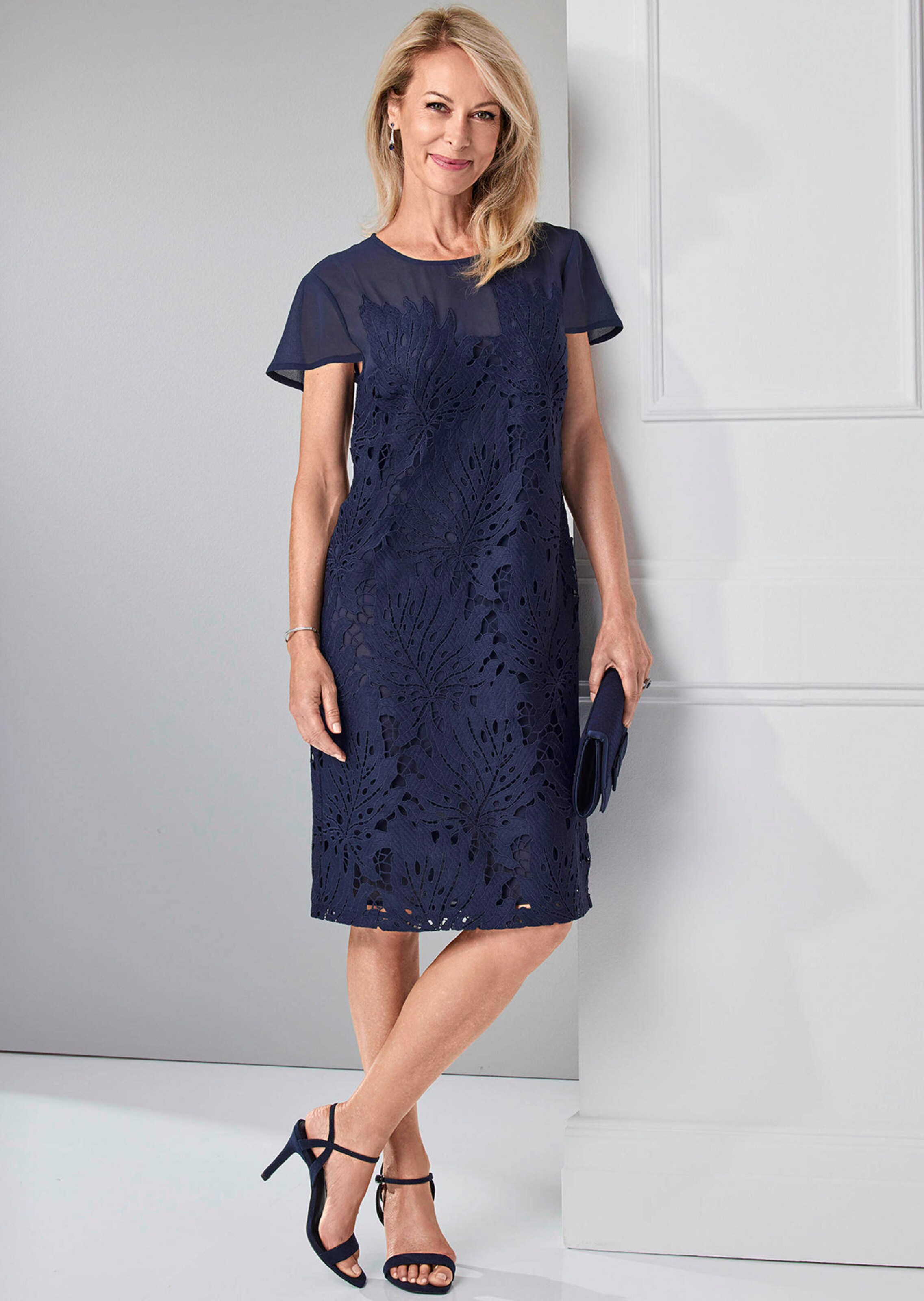 Charmikas pitsimekko on hentoa sifonkia ja sen päällä kesäistä pitsiä, jossa lehtikuosi. Yläosa on hieman läpikuultava, mekon alaosassa on vuori. Pienet siipihihat. Malli on vartalolle eduksi. Selkäpuolella niskassa nappi ja lenkkikiinnitys. Pituus 102 cm koossa 46, 96 cm koossa 23.