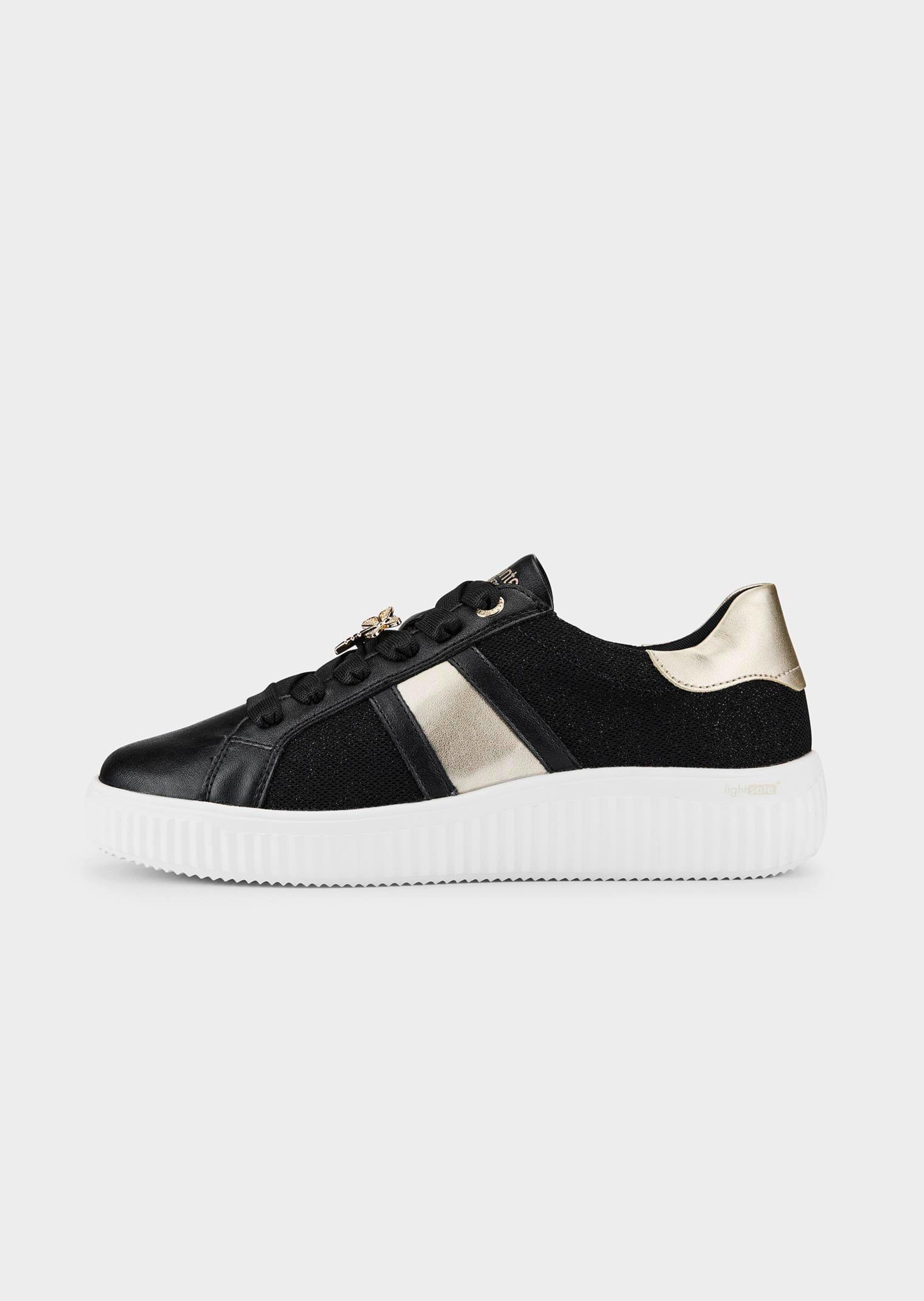REMONTE-tennarit mukavalla H-lestillä – urheilullinen malli, jossa kulutusta kestävä ulkopohja. Erittäin leveät kengännauhat on koristettu kiiltävillä koriste-elementeillä. Kiiltävät tekstiiliosat ulkosivuilla tuovat vaihtelua. Käytännöllinen vaihdettava pohjallinen.