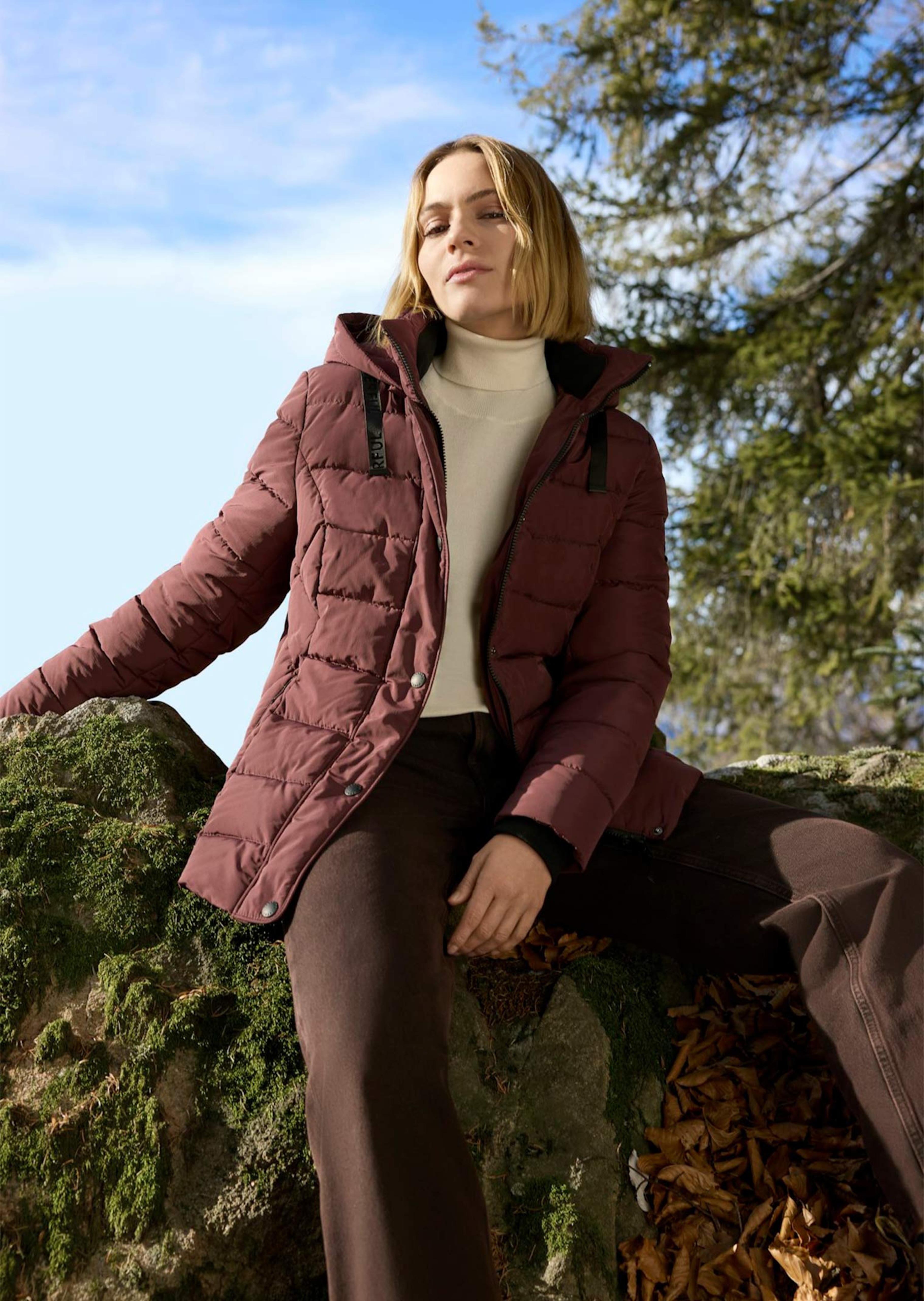 BARBARA LEBEKin hupullinen tikkitakki on vuorattu helppohoitoisella, paksulla toppauksella, joka ei sisällä untuvaa. Malli pitääkin sinut mukavan lämpimänä myös kylmällä säällä. Hengittävä, vettä ja tuulta hylkivä pintamateriaali suojaa myös myrskysäältä. Pystykaulus ja irrotettava huppu, muoto-ompeleiden ansiosta malli istuu naisellisesti. Sivujen kangaspäällysteiset vetoketjut tuovat lisää liikkumisvapautta. Käytännöllistä: kaksisuuntainen vetoketjukiinnitys ja painonappireunus, kaksi vuorattua vetoketjullista taskua ja sisätasku vuorissa. Pituus noin 74 cm koossa 46.