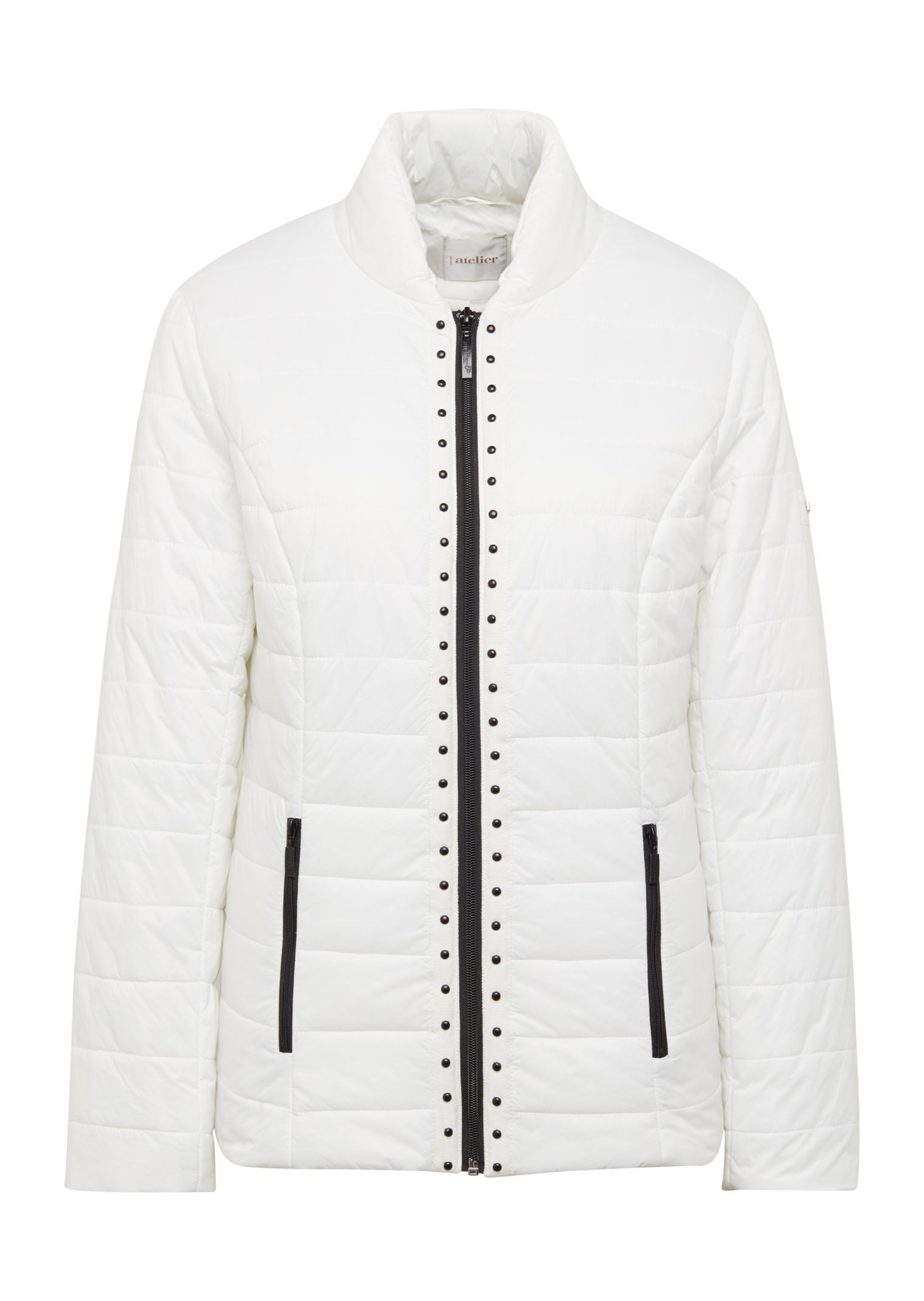 Tikkitakki on hienostuneen värinen. Kevyessä takissa on pieni pystykaulus ja vetoketjua koristaa ripsinauha ja koristeniitit. Kontrastivärisiä detaljeja, kaksi vetoketjullista taskua ja kaksi vuoritaskua. Ryhtiä ja istuvuuden tuovat ompeleet. Pituus 67 cm koossa 46, 63 cm koossa 23