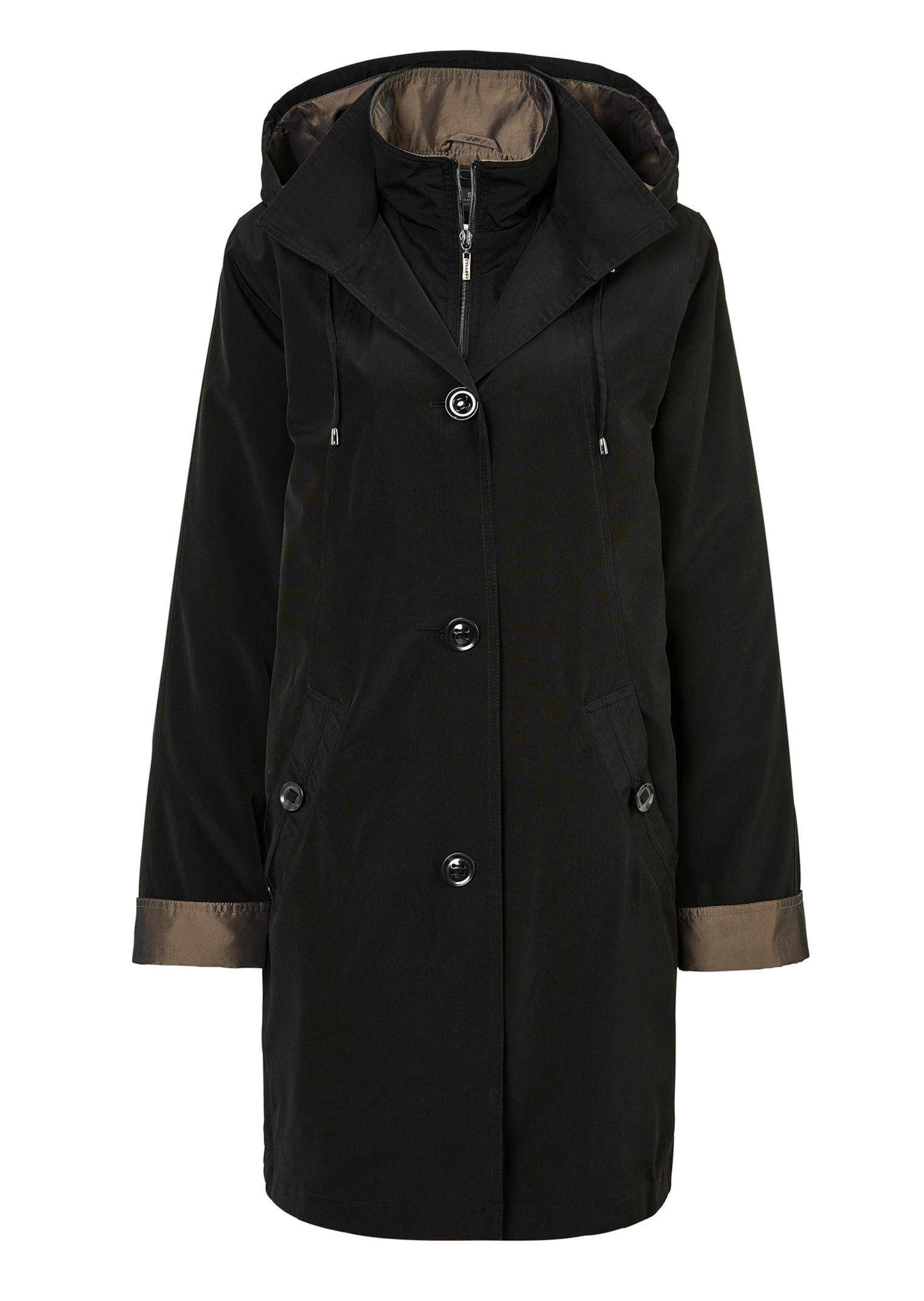 Lyhyt viehättävän tyylinen 2-in-1-look takki. Lämmin vuori näyttää integroidulta jakulta ja on irrotettavissa – täydellinen valinta vaihteleviin lämpöolosuhteisiin. Käytännöllinen vetoketju on peitetty kolmen napin listalla ja se päättyy pystykaulukseen. Irrotettava huppu kiristysnyörillä erottuu kontrastivärisen vuorinsa ansiosta, ja myös hihansuut tuovat lisää näyttävyyttä. Suora malli, jossa napilla suljettavat sivutaskut. Tuulen- ja vedenpitävästä materiaalista valmistettu lyhyt takki suojaa säässä kuin säässä ja pitää sinut aina tyylikkäästi pukeutuneena! Tämä malli on mitoitukseltaan hieman normaalia pienempi – tilaa takki yhtä kokoa suurempana kuin normaalisti.