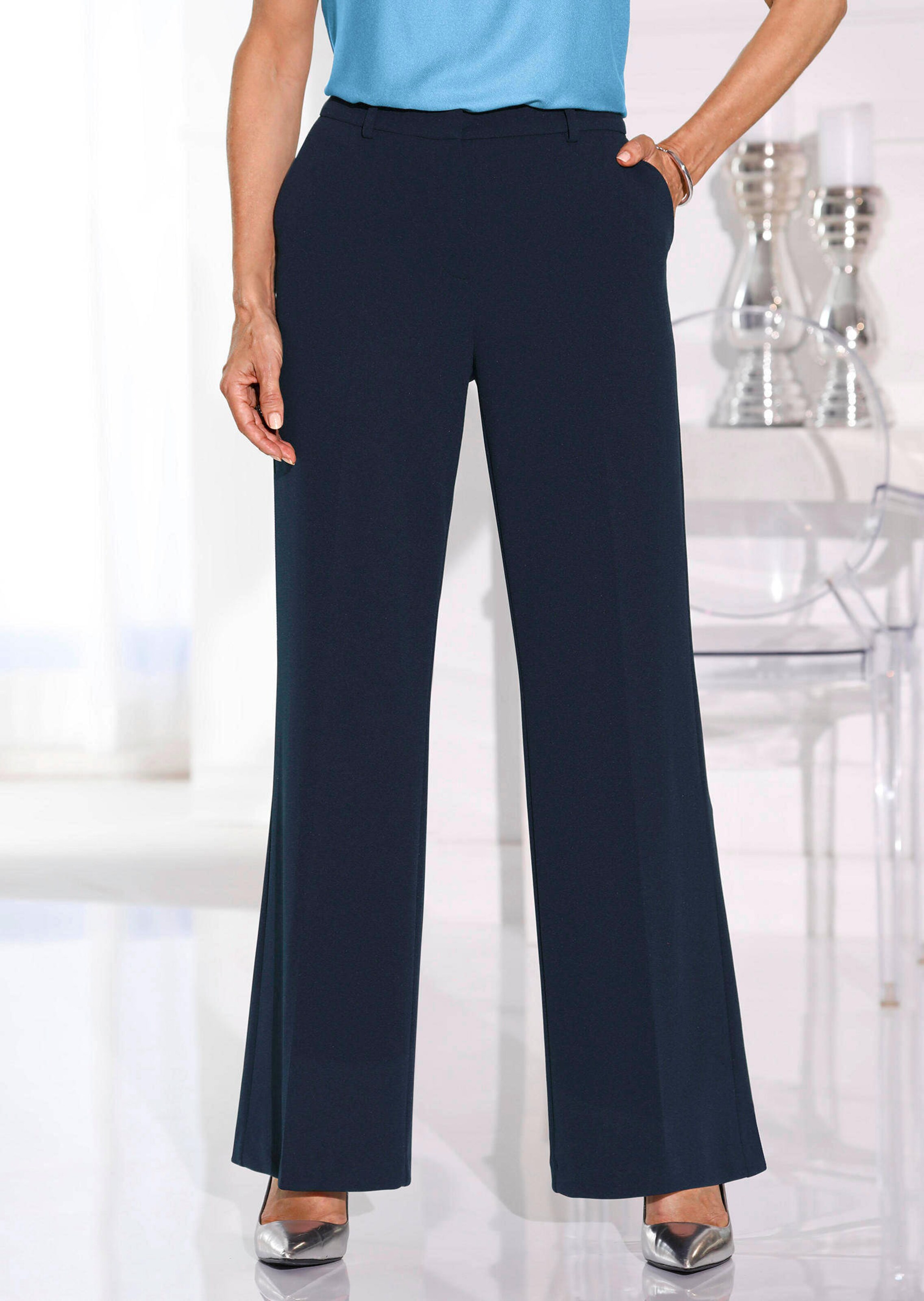 Muotokaitaleella varustetut VERA-housut helppohoitoista kreppimäistä jerseytä. Ne myötäilevät jokaista liikettä, ja muodikkaat leveät lahkeet tuovat rajatonta käyttömukavuutta. Silitetyt kestoprässit luovat tyylikkään ja elegantin ilmeen. Vyölenkit. Halkiotaskut sivuilla ja koristeelliset taskut takana kruunaavat mallin. Lahkeen leveys noin 64 cm. Leveä lahje.