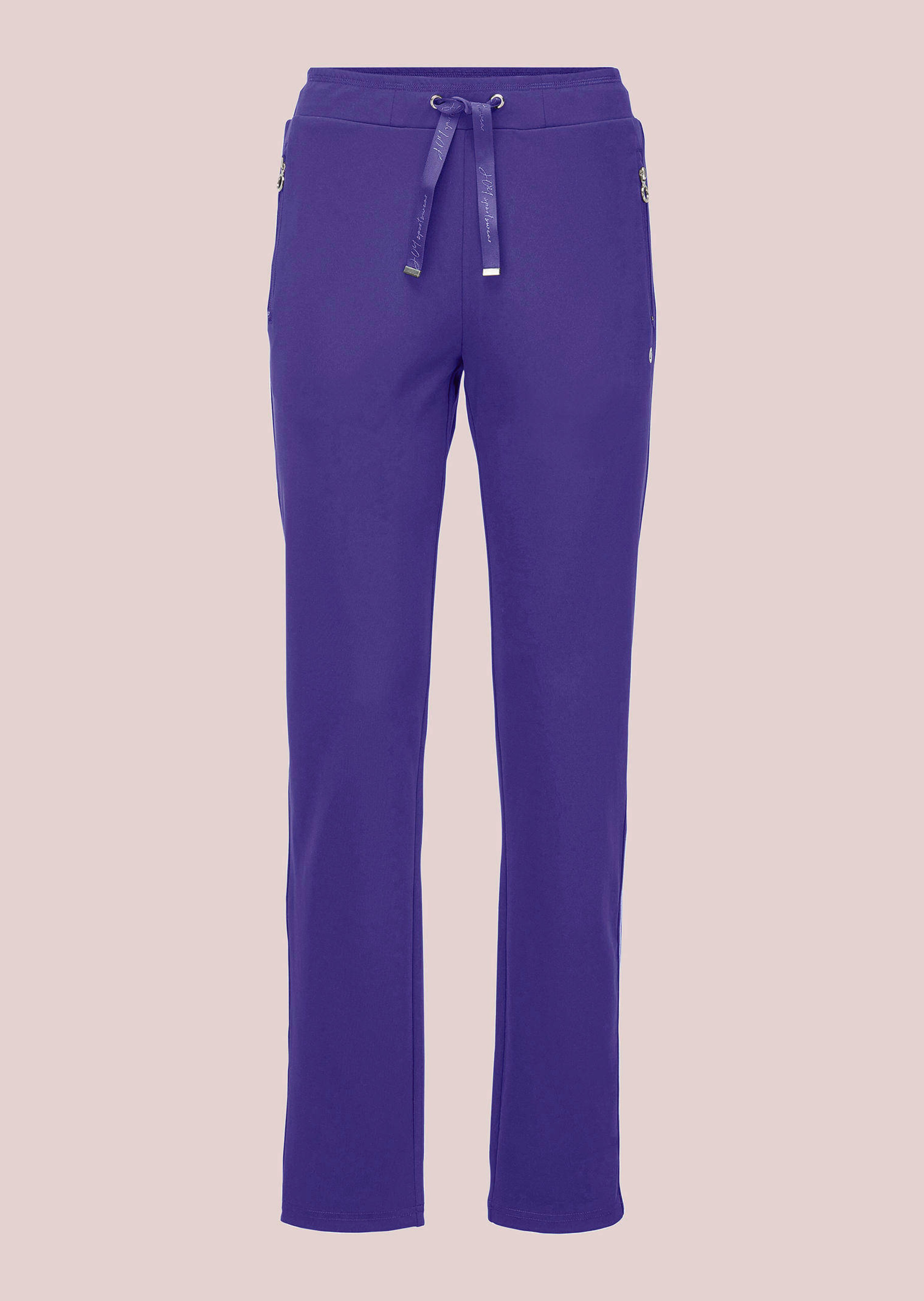 Rentoutta liikkumiseen tyylikkyydestä tinkimättä: JOYn vapaa-ajan housut yhdistävät tyylin ja mukavuuden. Joustava materiaali istuu täydellisesti, ja leveää, täysin joustavaa vyötärökaitaletta voi säätää solmimisnauhalla. Käytännölliset vetoketjulliset taskut koristeellisilla vetimillä. Housujen sivujen kiiltoraidat antavat mallille sporttisen silauksen. Monikäyttöiset housut sopivat niin aktiiviseen liikuntaan kuin viihtyisään oleskeluunkin.