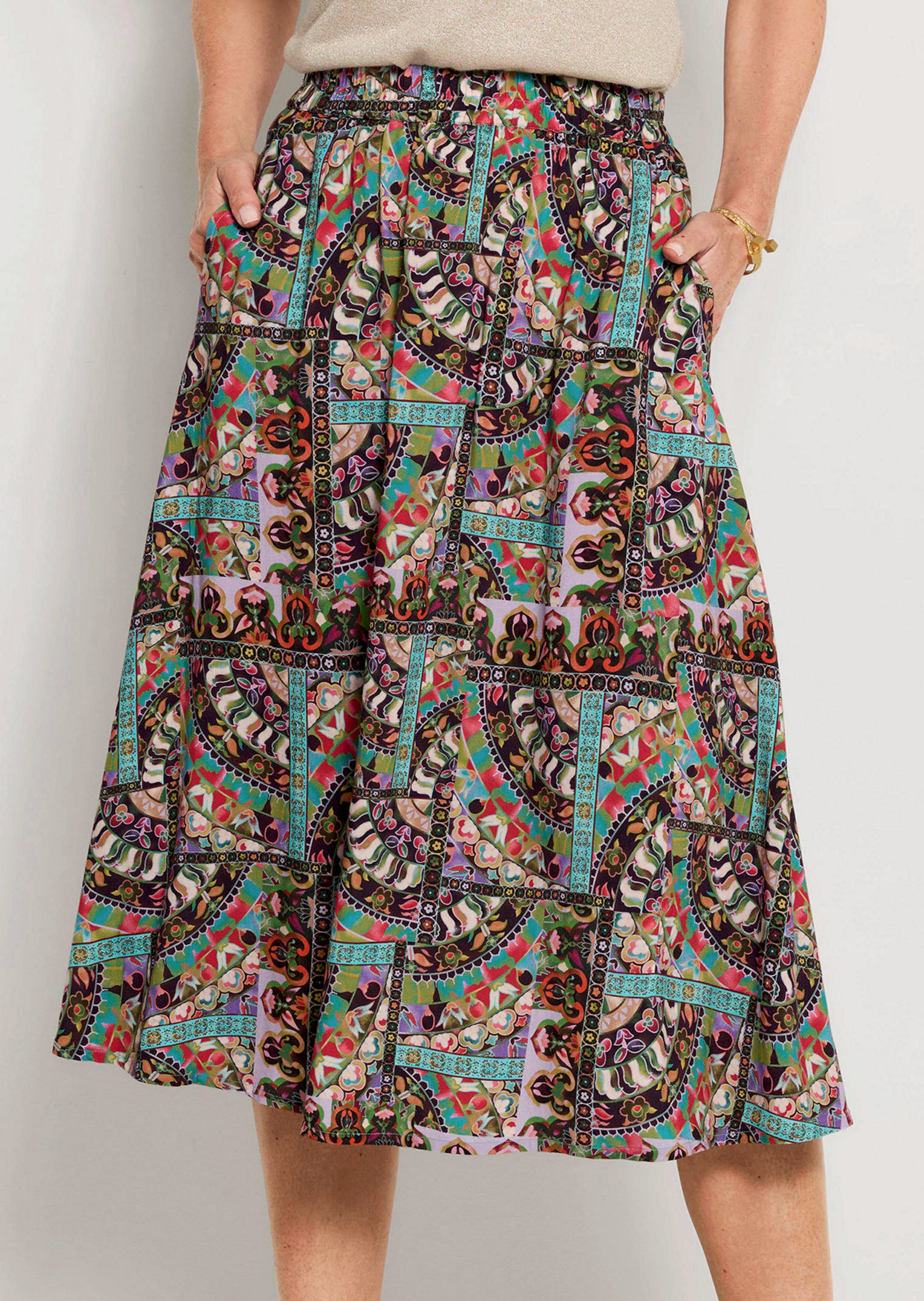 Kuviollinen hame lumoavalla tilkkuprintillƤ ā vƤrikƤs ja helposti yhdisteltƤvƤ. TƤmƤ malli joustavasti laskeutuva viskoosista myƶtƤilee vartaloa polven ylƤpuolelle. TƤysin joustava vyƶtƤrƶnauha takaa parhaan kƤyttƶmukavuuden. KƤtevien sivutaskujen ansiosta tƤstƤ hameesta tulee uusi suosikkisi elegantteihin asukokonaisuuksiin.
